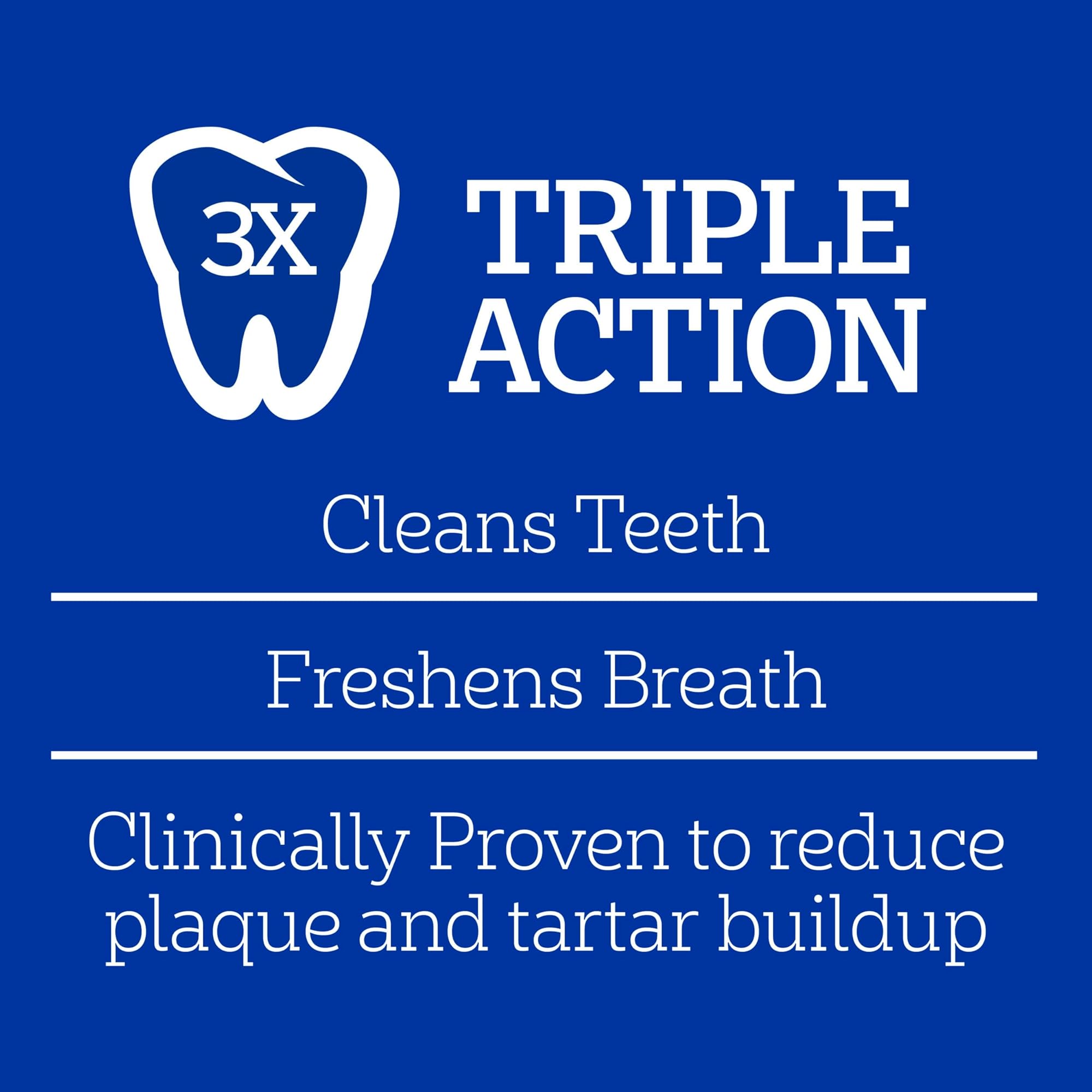- פעולה משולשת: חטיפי טיפוח שיניים לגזעים גדולים של Pedigree Dentastix מגיעים עם פעולה משולשת המפחיתה הצטברות אבנית, מנקה שיניים ומרעננת את הנשימה.