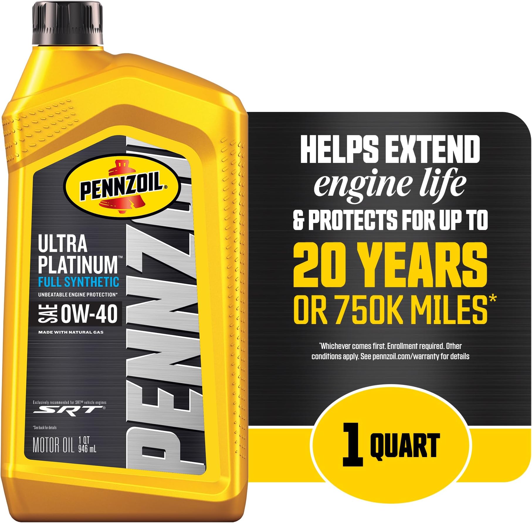 שמן המנוע Pennzoil Ultra Platinum Full Synthetic 0W-40 הוא הפורמולה המתקדמת ביותר שלנו עם הגנה שאין שני לה מפני בלאי ובוץ, כמו גם ניקיון שאין שני לו. כשמדובר בתנאי נהיגה קשים, סמכו על ההגנה חסרת התחרות למנוע* של Pennzoil Ultra Platinum. הוא מציע ביצועים יוצאי דופן בטמפרטורות קיצוניות וצריכת דלק טובה יותר (בהתבסס על התקן העדכני ביותר בתעשייה). Pennzoil Ultra Platinum Full Synthetic 0W-40 הוא הארס המומלץ בכל SRT Viper ובשמן המנוע שזור בכל Demon (SRT הוא סימן מסחרי רשום של Chrysler Group LLC). לא משנה מה הכביש, Pennzoil Ultra Platinum מסייע להאריך את חיי המנוע שלכם ומגן עד 20 שנים או 750,000 מייל, המוקדם מביניהם**. (*מבוסס על מבחן שחיקה של Sequence IVA; מבחן חמצון ושקיעות של Sequence IIIH; ומבחן בוצה של Sequence VH. **אחריות מוגבלת של שמן Pennzoil Ultra Platinum Lubrication: עד 20 שנים או 750,000 מייל, המוקדם מביניהם, אם אתם משתמשים אך ורק בשמן מנוע סינתטי מלא של Pennzoil Ultra Platinum. המנוע שלכם חייב להיות בעל פחות מ-125,000 מייל ויוצר ב-72 החודשים האחרונים. כדי לשמור על האחריות, יש להחליף את שמן הרכב ומסנן השמן לפחות בתדירות המומלצת על ידי יצרן הרכב. נדרשת הרשמה. שמרו את הקבלות שלכם. תנאים נוספים חלים. ראו pennzoil.com/warranty כדי להירשם ולפרטים ותנאים מלאים.)