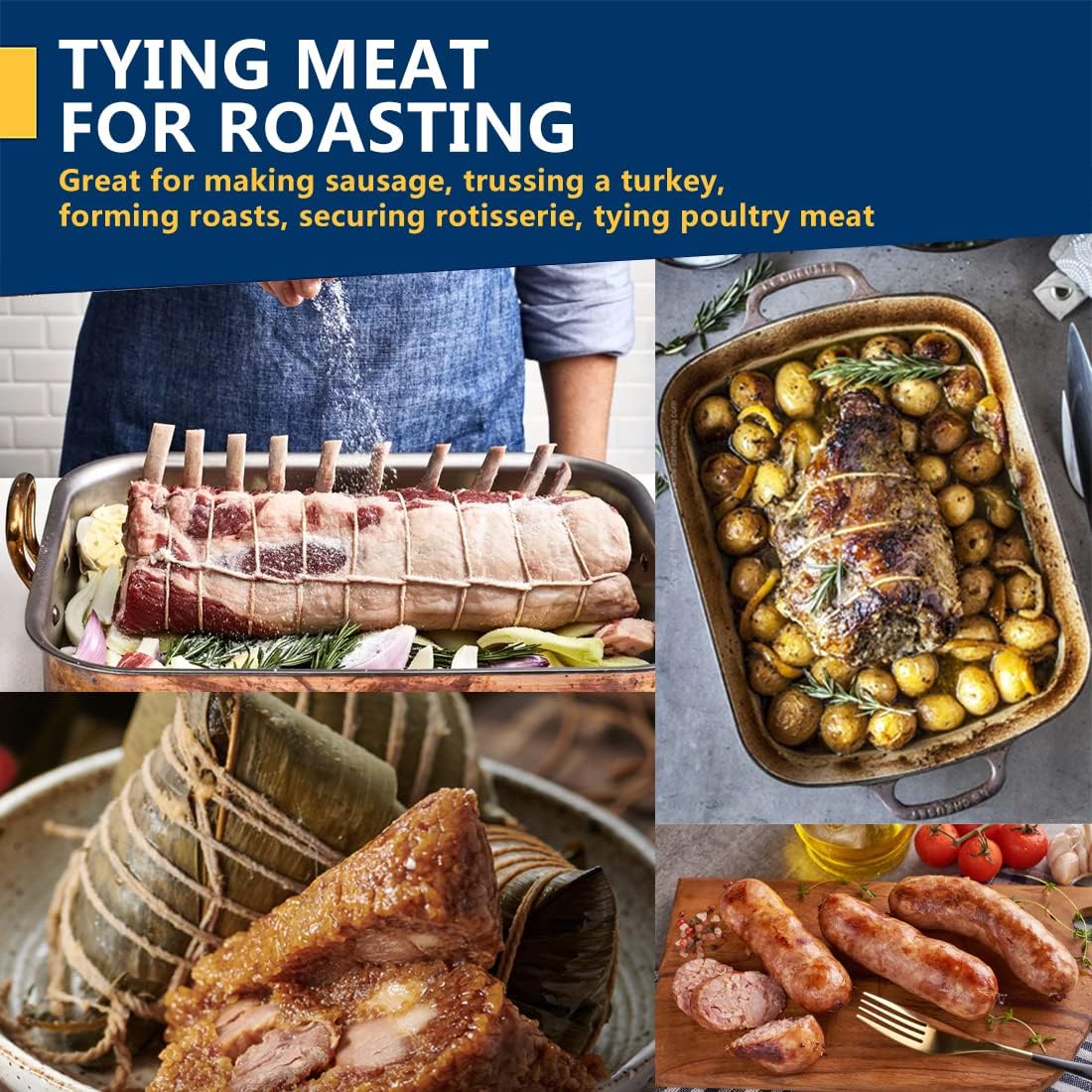 - 【מטבח ויצירה】פריט חובה לבית, עוזר טוב ביומיום. למטבח, ניתן להשתמש בו בביטחון לצליית בשר, הודו, עוף ונקניקיות. ליצירות יד, הוא גם בחירה טובה לסריגה במסרגה אחת, גינון ועטיפת מתנות. ניתן להשתמש בו לעטיפת מתנות יפה, חוט לכרטיסי מתנה, חוט לתמונות, יצירות אמנות ופרויקטים רבים אחרים של עשה זאת בעצמך.