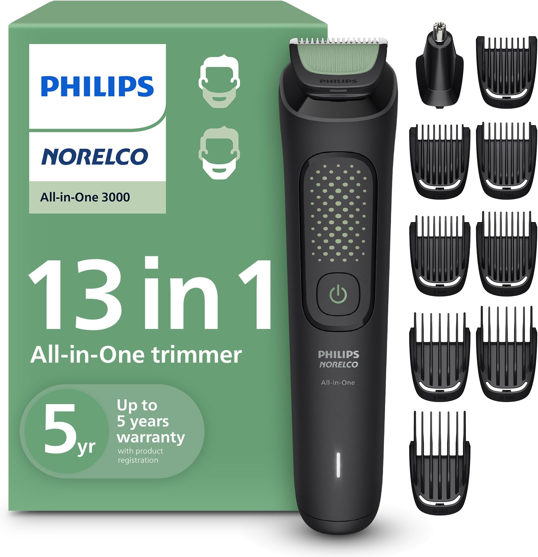 מכונת תספורת 13 ב-1 של פיליפס נורלקו מסדרת 3000 מבית פיליפס, מעצב זקן וקוצץ שיער לגברים, 9 מצבי אורך ולהבים ידידותיים לעור עם השחזה עצמית, MG3919/50