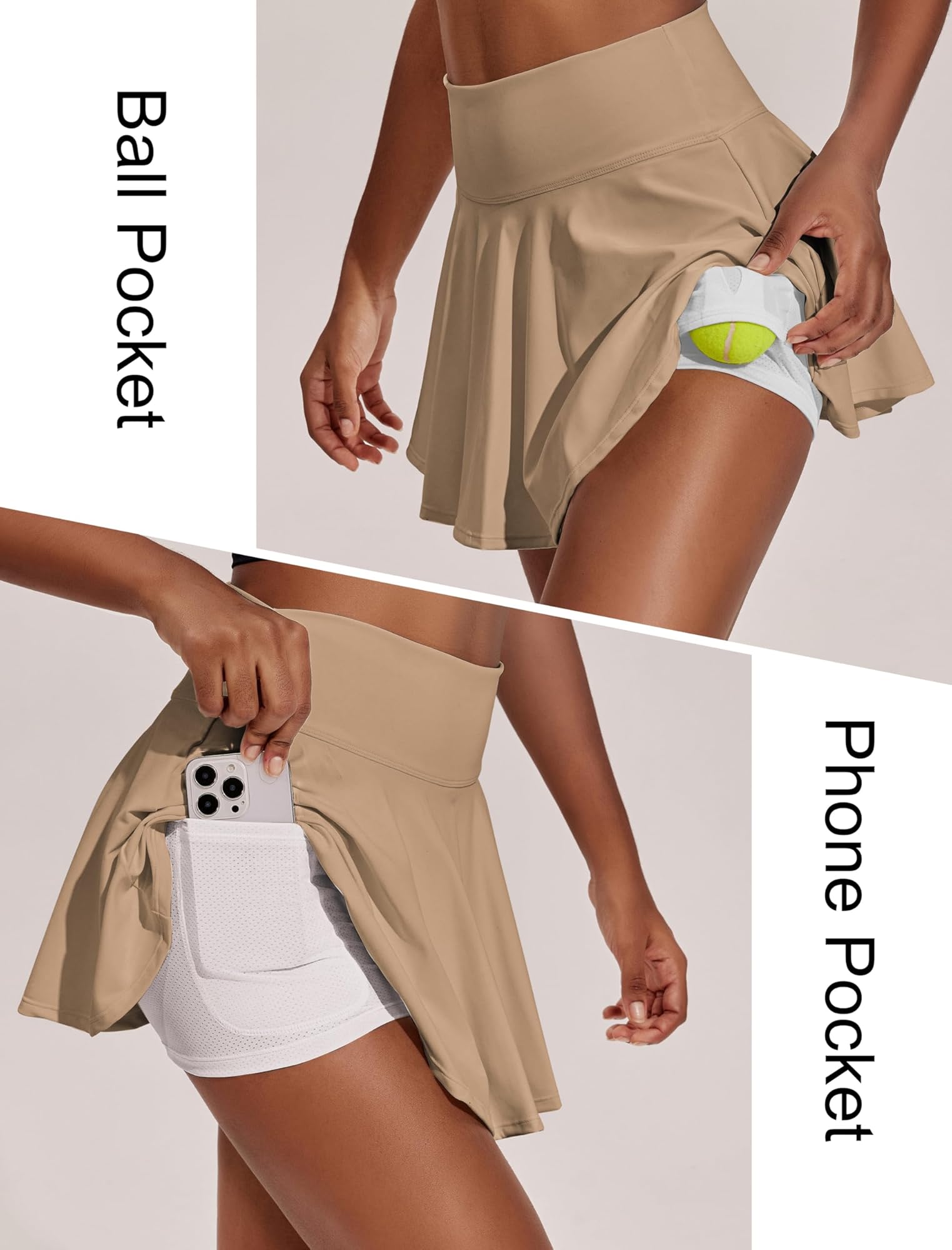 חצאיות טניס 14 אינץ' לנשים עם כיסים של PINSPARK, מכנסונים, חצאית גולף קפלים, מותן גבוה, חצאית פיקלבול זורמת, חאקי XL