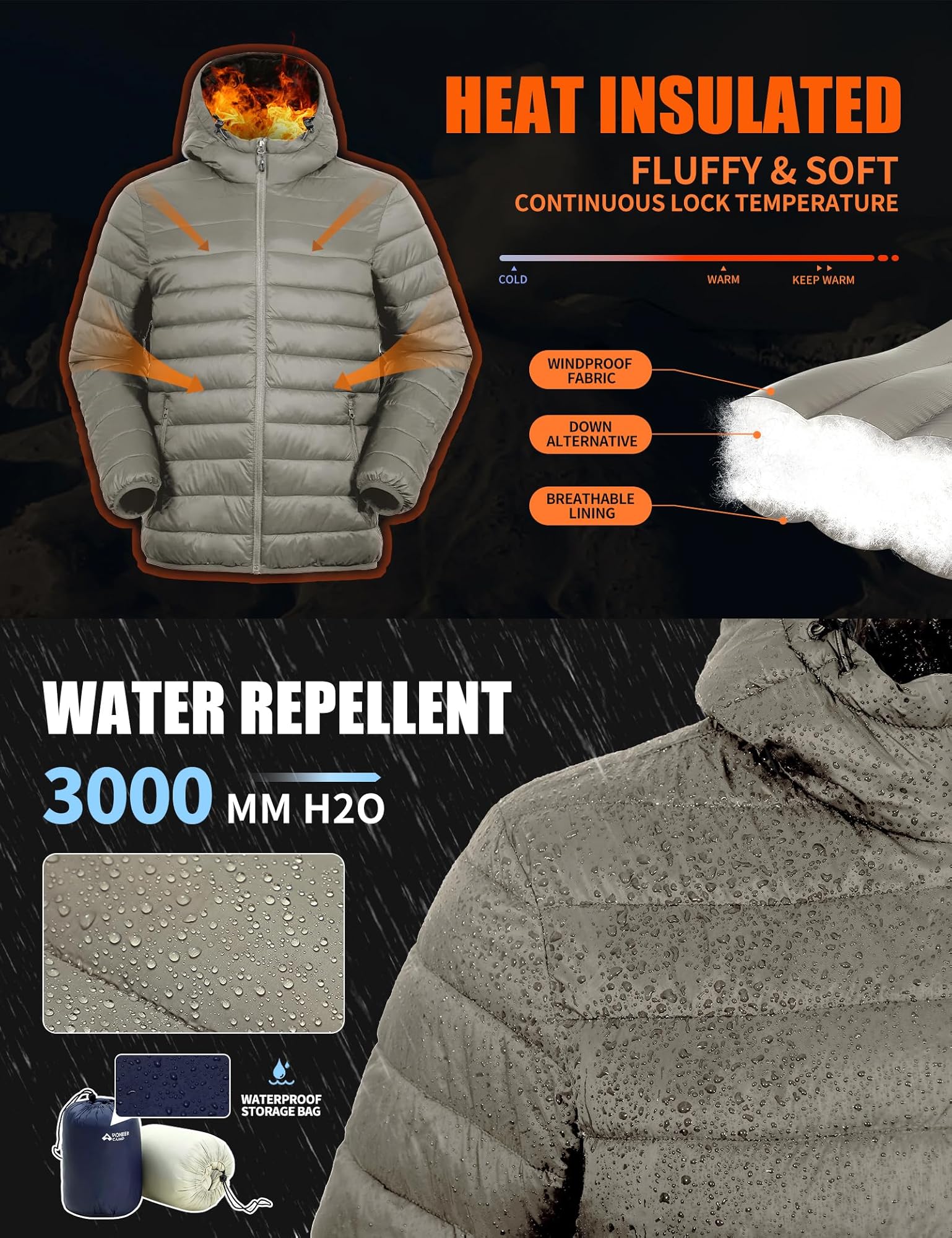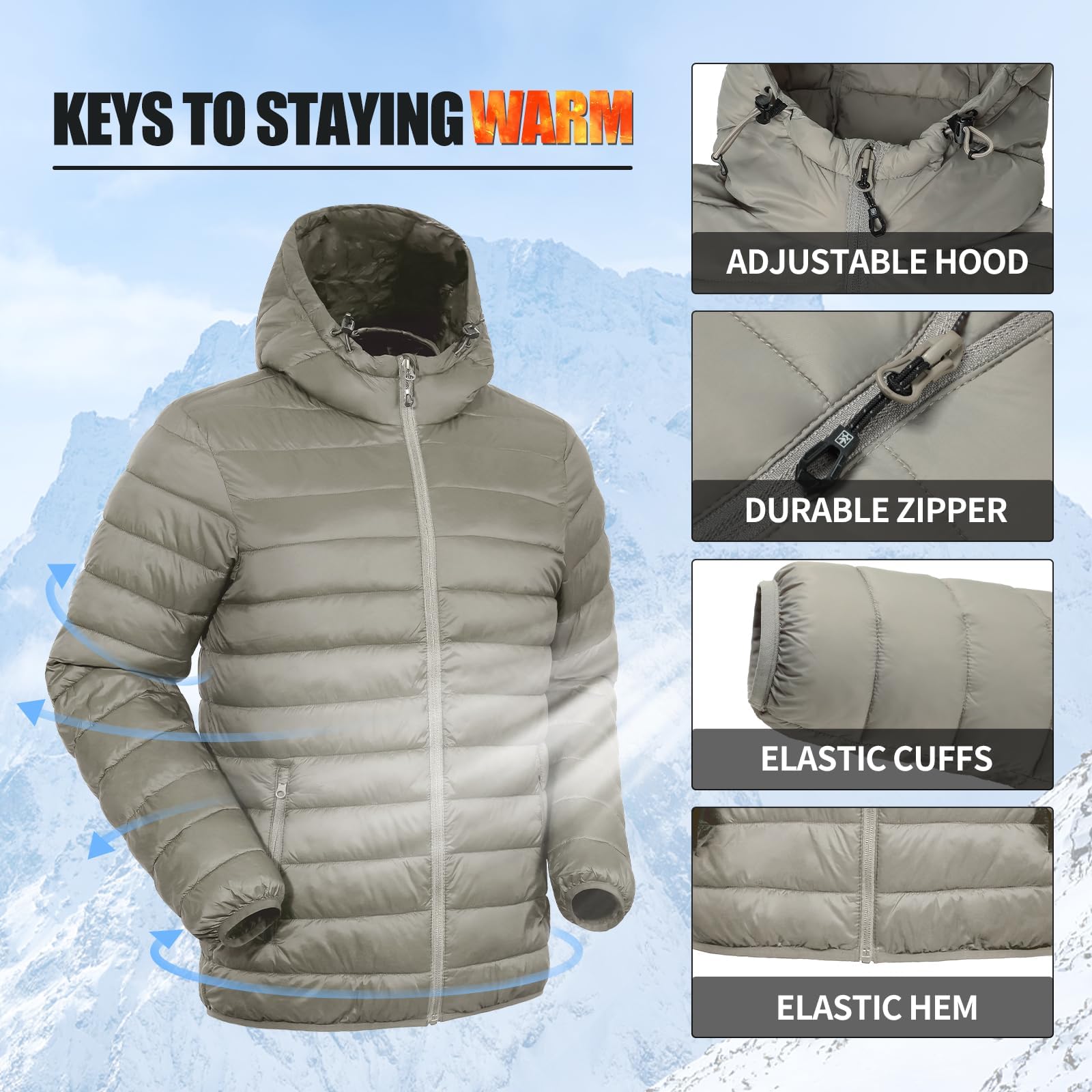 - 😎【קל לאריזה】: מעיל פוך לגברים עם קפוצ'ון, ניתן לאחסן אותו תוך דקה ולהכניס לתיק קטן ועמיד למים. מעיל הפוך הקל והמבודד שלנו לגברים מתאים מאוד ללבוש יומיומי, עבודה בחוץ, מעיל בועות תרמי הניתן לארוז לא יתפוס מקום במזוודה, בתרמיל או בתיק, כך שתוכלו לנסוע ללא לחץ.