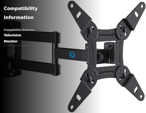 מתקן קיר לטלוויזיה Pipishell Full Motion עבור טלוויזיות ומסכים שטוחים ומעוקלים Echo Show בגודל 21/15 ו-13-42 אינץ', VESA מקסימלי 200x200 מ"מ עד 22.5 ק"ג, תושבת קיר לטלוויזיה עם הארכה מסתובבת, סיבובית והטיה