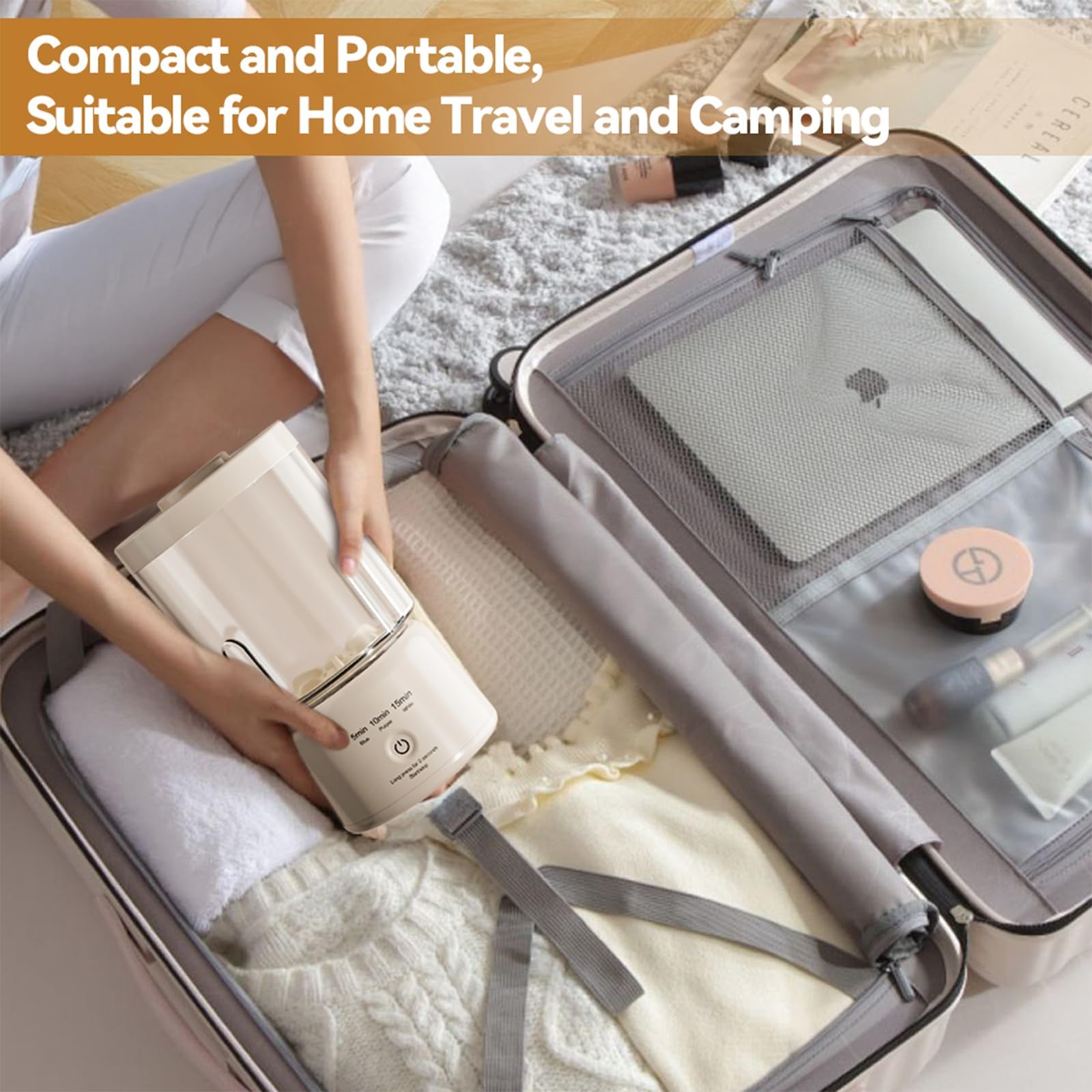 - 【נייד וחוסך מקום】מכונת הכביסה הניידת שוקלת רק 1.76 פאונד ובעלת קיבולת של 1.6 ליטר, הגודל הוא 12.7*5.3*5.3 אינץ', קומפקטית וקלה לנשיאה, אידיאלית לבית, למלון, לקרוואן, לנסיעות.