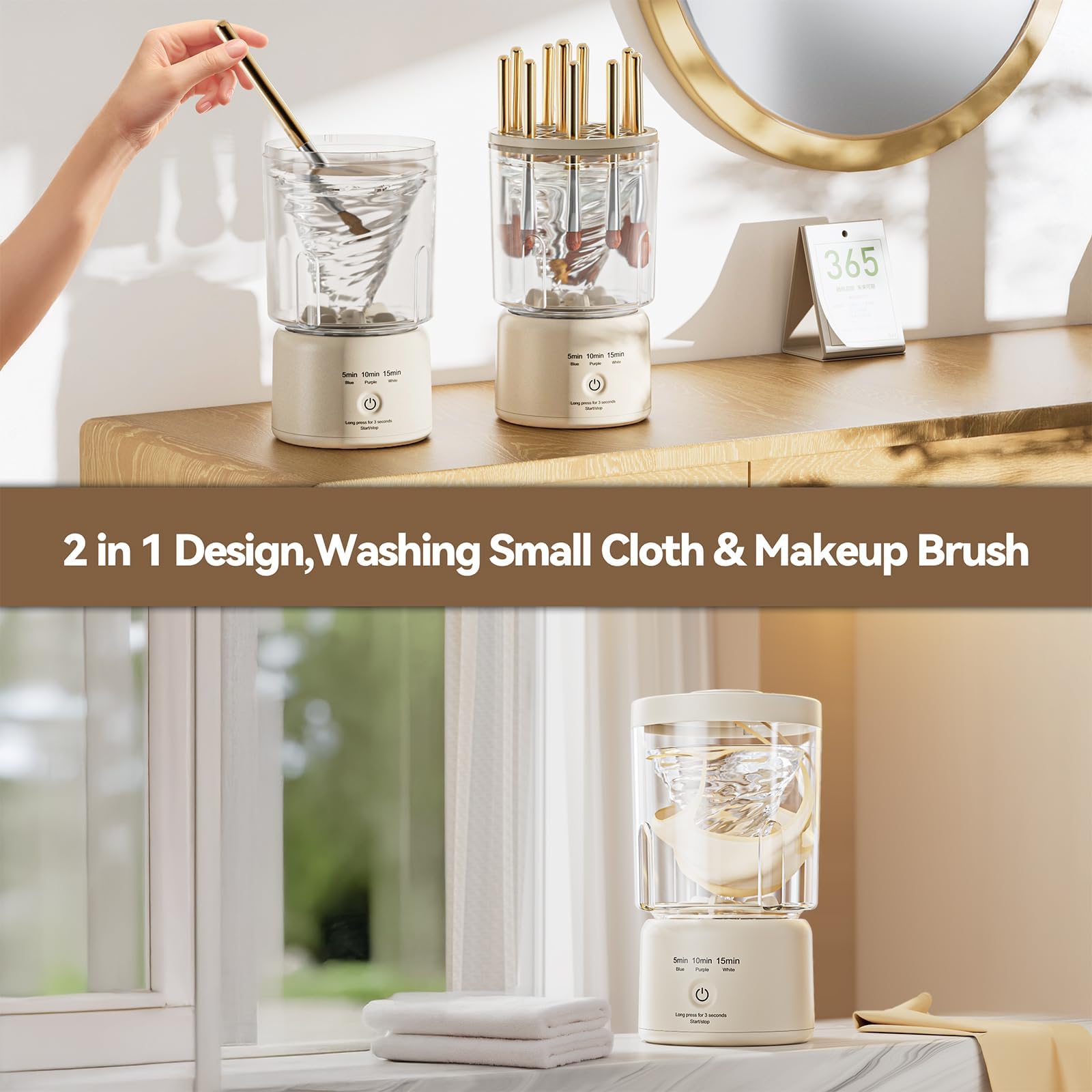 - 【עיצוב 2 ב-1】מכונת כביסה מיניאטורית זו יכולה לנקות תחתונים ומברשות איפור, בעזרתה תוכלו לבחור לנקות בגדים קטנים או מברשות איפור בגדלים שונים. מתאימה לכביסת בדים עדינים. שלושה מצבי כביסה כדי לענות על צרכי הכביסה השונים שלכם.