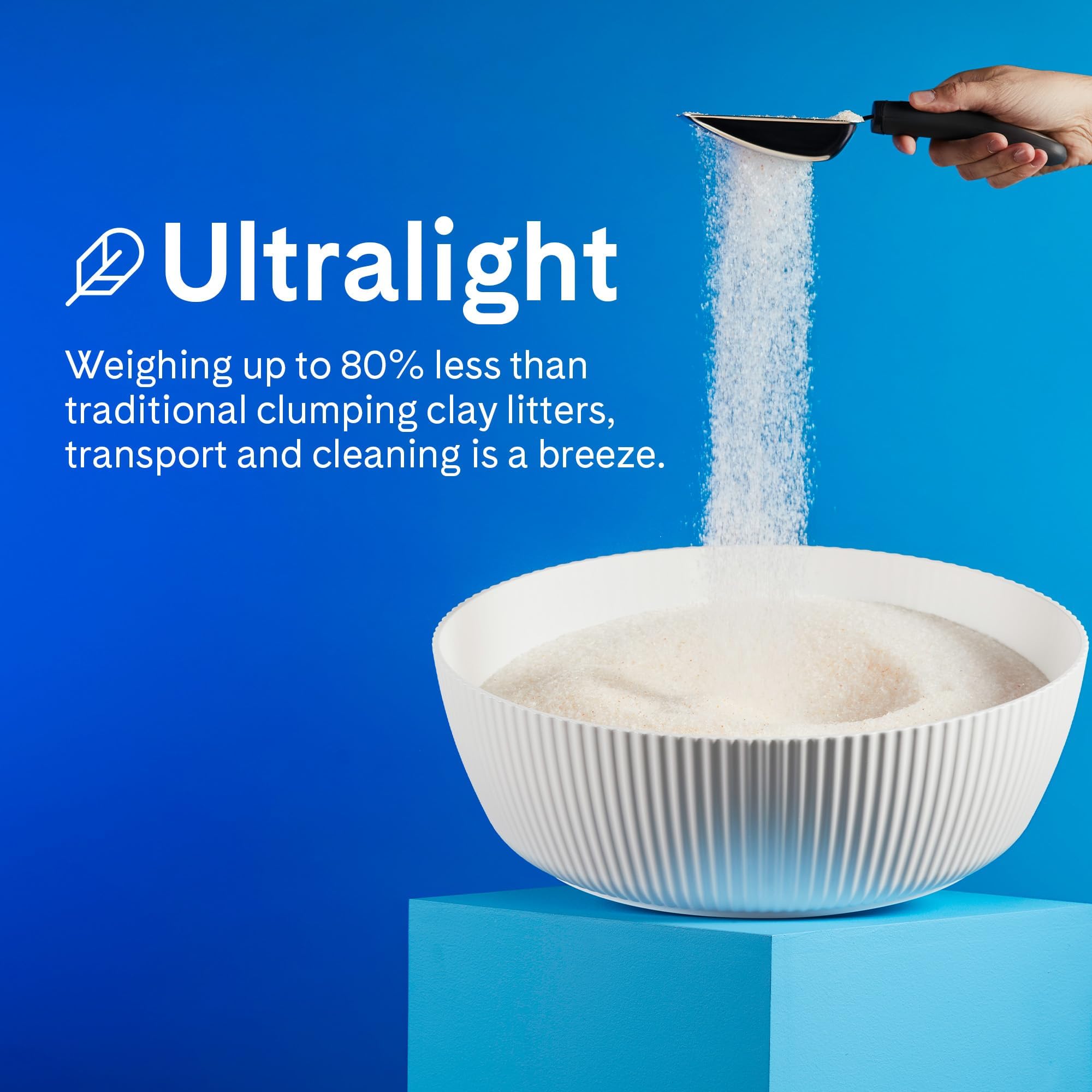 - מבחר החול: חול בעל תחזוקה נמוכה לא צריך להיות מותרות. הנוסחה שלנו עשויה מסיליקה ג'ל סופגת, והיא עשויה להיות בעלת כמות קטנה של עקיצות, כמות קטנה של אבק וקלה עד 80% מחול חרס מסורתי שמצטבר בצברים. אין צורך במילוי חוזר שבועי או ביצירת גושים - פשוט לאסוף את הקקי.