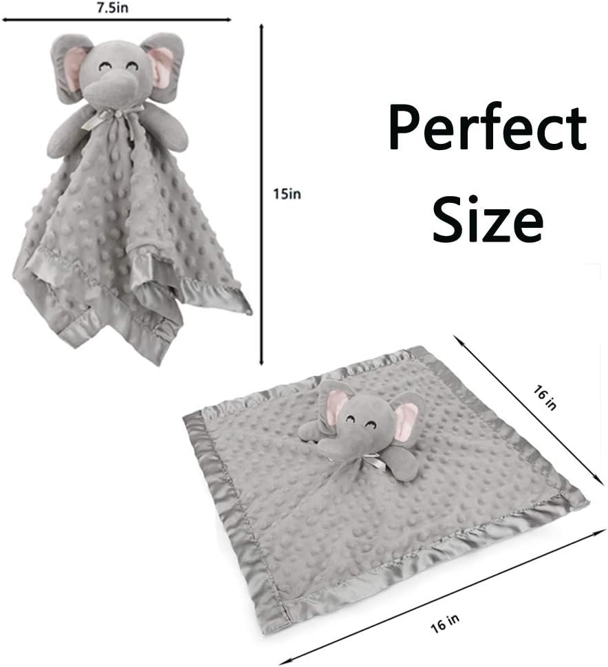 שמיכת ביטחון לפילים של Pro Goleem, מתנות תינוק רכה ואהובה לבנים ולבנות, צעצוע חיבוק, חיבוקים ופריטים חיוניים לתינוק, אפור 16 אינץ'