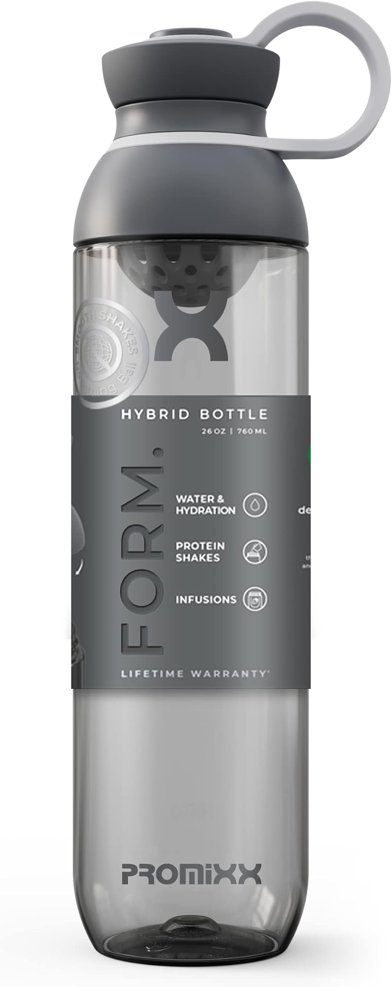 Promixx FORM Protein Shaker Bottle - A Premium for Shakes Infusions and Hydration Durable Gym Bottle, Leakproof Lid, Odorless 26oz (Graphite Gray), (PRO-P-S2-760SHAKER-GGCG)