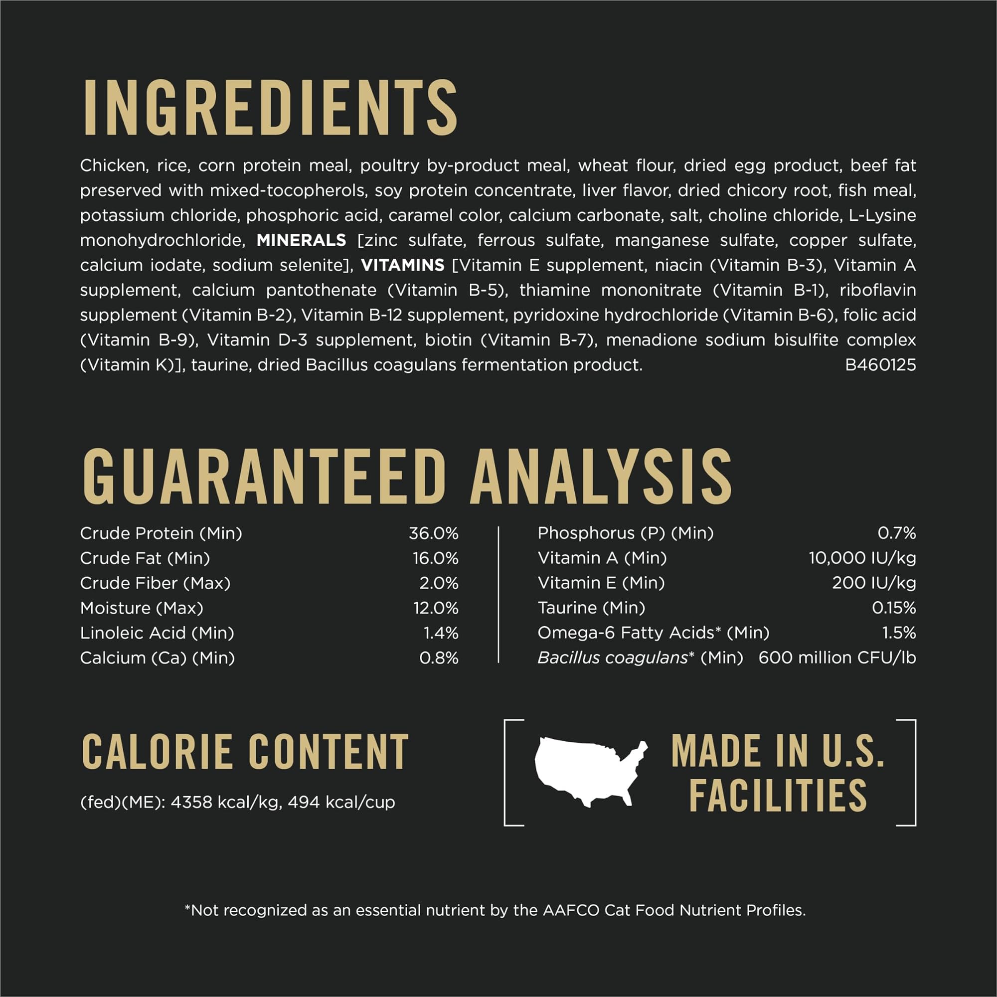 - עוף הוא המרכיב הראשון במזון יבש זה לחתולים, עשיר בחלבון, עם אורז לתמיכה בכוח השרירים