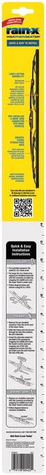 Rain-X, שם מוכר ומוערך בתחום להבי המגבים מזה כמעט 20 שנה, מחויב לספק לכם את הביטחון של ראות משופרת בנהיגה. במשך למעלה מ-15 שנה, Rain-X WeatherBeater (להב המגבים המקורי של WeatherBeater) עדיין ידוע ואמין בזכות איכותו, עמידותו ותמורהו. WeatherBeater תוכנן להיות להב מגב מסורתי באיכות גבוהה, העומד או עולה על כל הסטנדרטים של יצרני הציוד המקורי לאיכות, עמידות ובנייה. להב קונבנציונלי זה כולל מגב מגומי טבעי, מסגרת פלדה מגולוונת קלאסית, נקודות לחץ מרובות ומפחיתי חיכוך משובצים. מגב הגומי הטבעי מספק עמידות בפני סדקים ופיצול הנגרמים ממזג אוויר, נוזל מגבי שמשות ומלח כבישים. מסגרת הפלדה המגולוונת מספקת חוזק ועמידות לאורך זמן, תוך מניעת חלודה וקורוזיה. נקודות לחץ מרובות ומפחיתי חיכוך משובצים מאפשרים פיזור לחץ אחיד על פני אורך הלהב ועוזרים לספק ניגוב נקי. אם אתם זקוקים לעזרה נוספת בקביעת גודל להב המגב המתאים לרכב שלכם, עיינו ב-Blade Finder שלנו או בתוכנית Confirmed Fit של אמזון. אם אתם זקוקים לעזרה בהתקנת להבי המגבים החדשים שלכם, ניתן למצוא סרטוני התקנה על ידי סריקת קוד ה-QR בגב אריזת להב המגב.