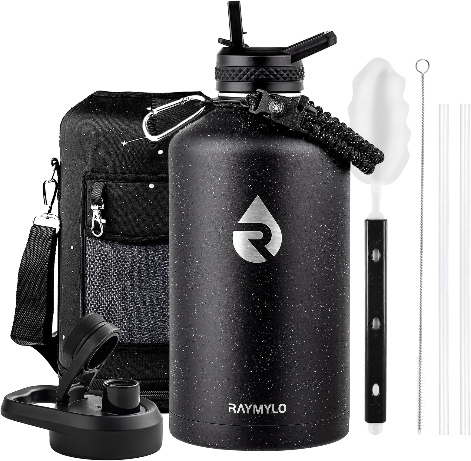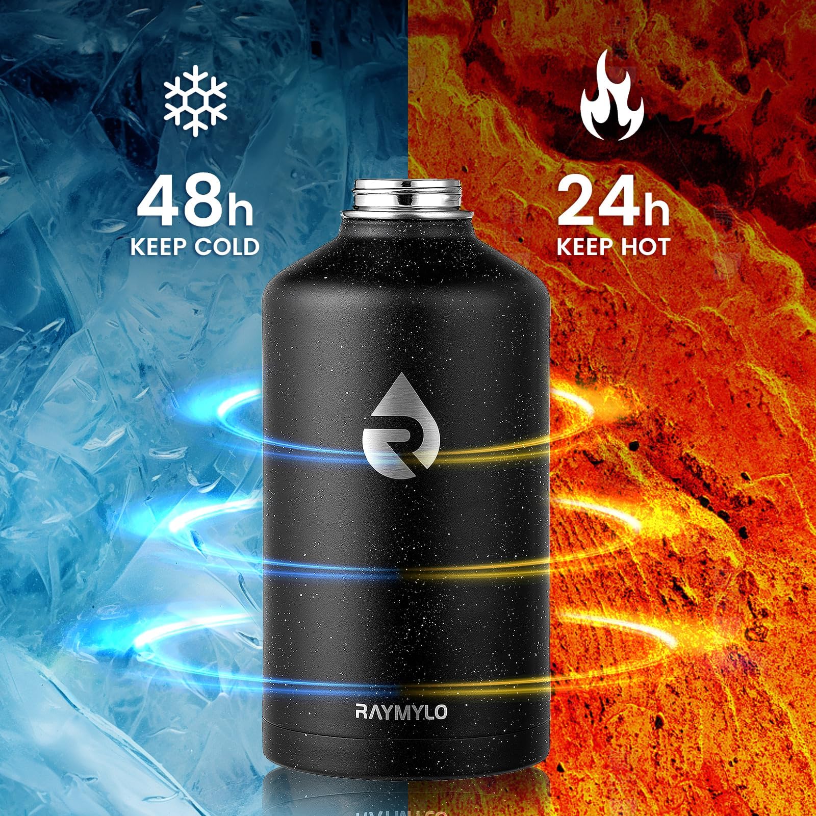 - Made for Clean and Healthy Drinkers: RAYMYLO big water bottle Built with non-toxic, BPA-free 18/8 stainless steel for clean, odorless sips. The wide mouth makes adding ice cubes and cleaning a breeze, while the powder coating adds a sturdy and refined finish that won't sweat, condense, or slip in wet palms.Hydrate clean, hydrate confidently!