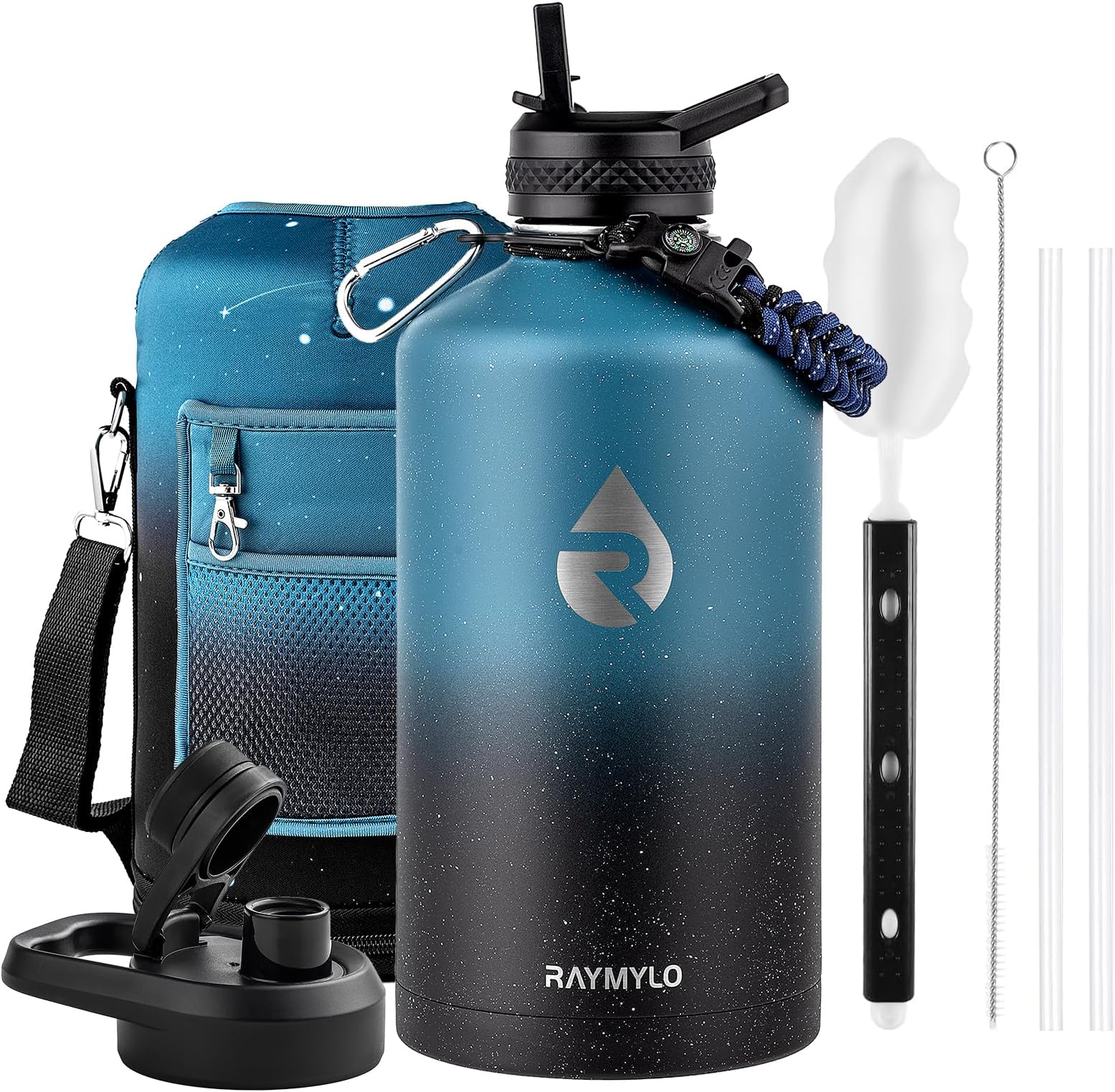 - Made for Clean and Healthy Drinkers: RAYMYLO big water bottle Built with non-toxic, BPA-free 18/8 stainless steel for clean, odorless sips. The wide mouth makes adding ice cubes and cleaning a breeze, while the powder coating adds a sturdy and refined finish that won't sweat, condense, or slip in wet palms.Hydrate clean, hydrate confidently!