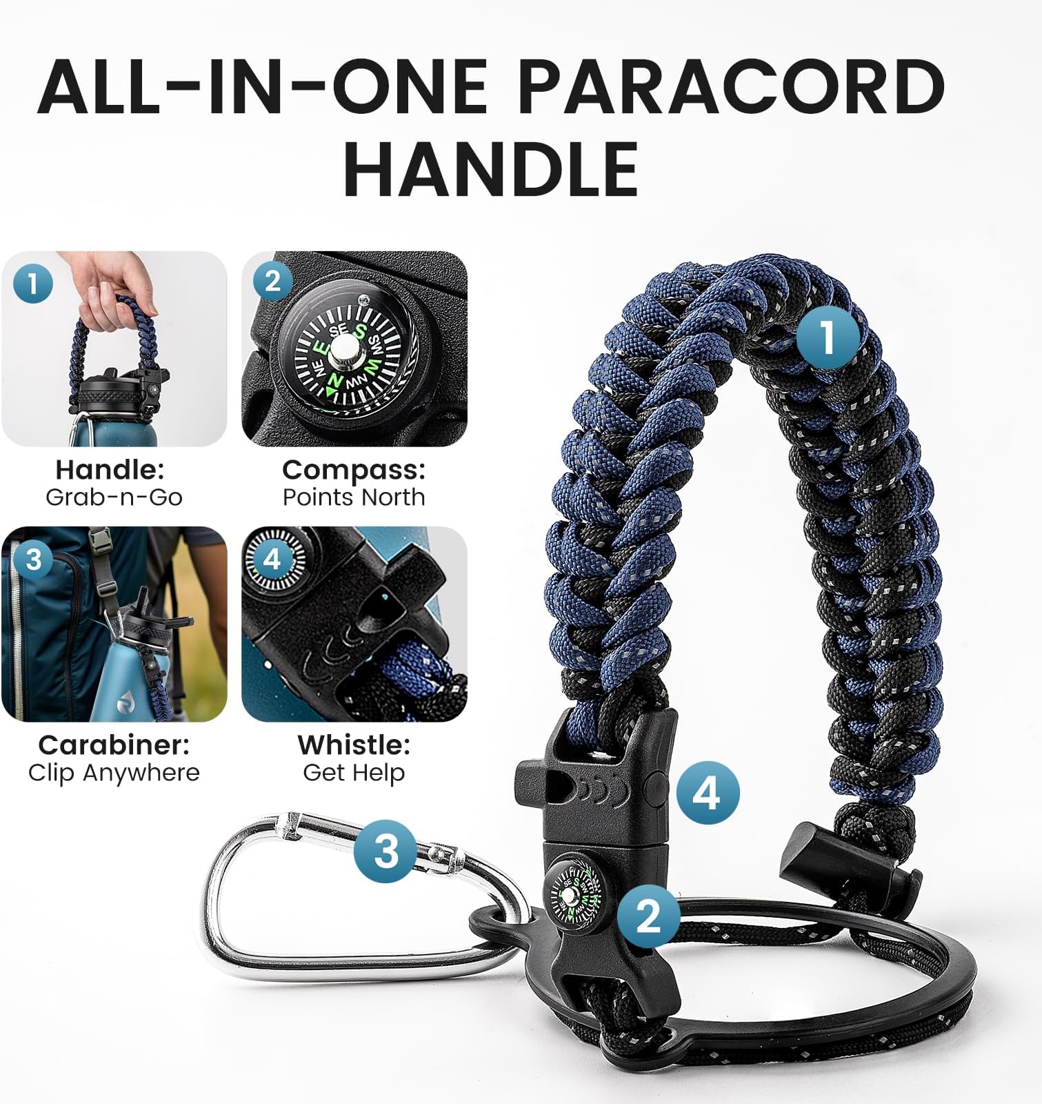 - Adventure Ready Paracord Handle: RAYMYLO 1/4 gallon water jug features a stylish color-coordinated paracord handle with a built-in compass and carabiner clip. This reusable water bottle's paracord handle is lightweight, durable, and perfect for hands-free carrying during hikes, cycling, or camping. Grab & go for spontaneous adventures under the stars!