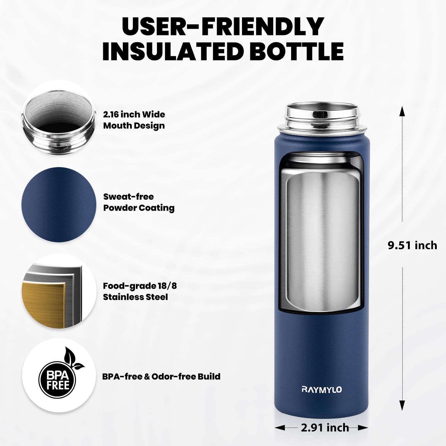 - Triple Wall Insulation: Raymylo 20 oz Modern Insulated Water Bottle featuring copper plated triple wall vacuum insulation, is tested to keep your drinks icy cold for up to 48 hrs and reassuring warm 24 hrs. Get this iconic water bottle to up your fitness track, you'll fall for hydrating as every sip is absolutely cool