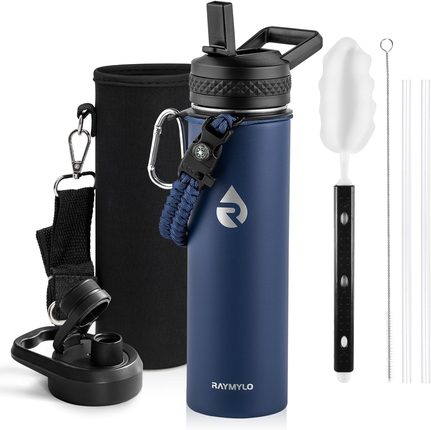 - What You'll Get: We offer Continuous After-sales Service and 100% customer satisfaction against any leakage or insulation failure. You purchase contains: RAYMYLO Water Bottle, Carrying Pouch, Straw Lid with 2 Straws & Straw Brush, Spout Lid, Paracord Handle, Bottle Brush