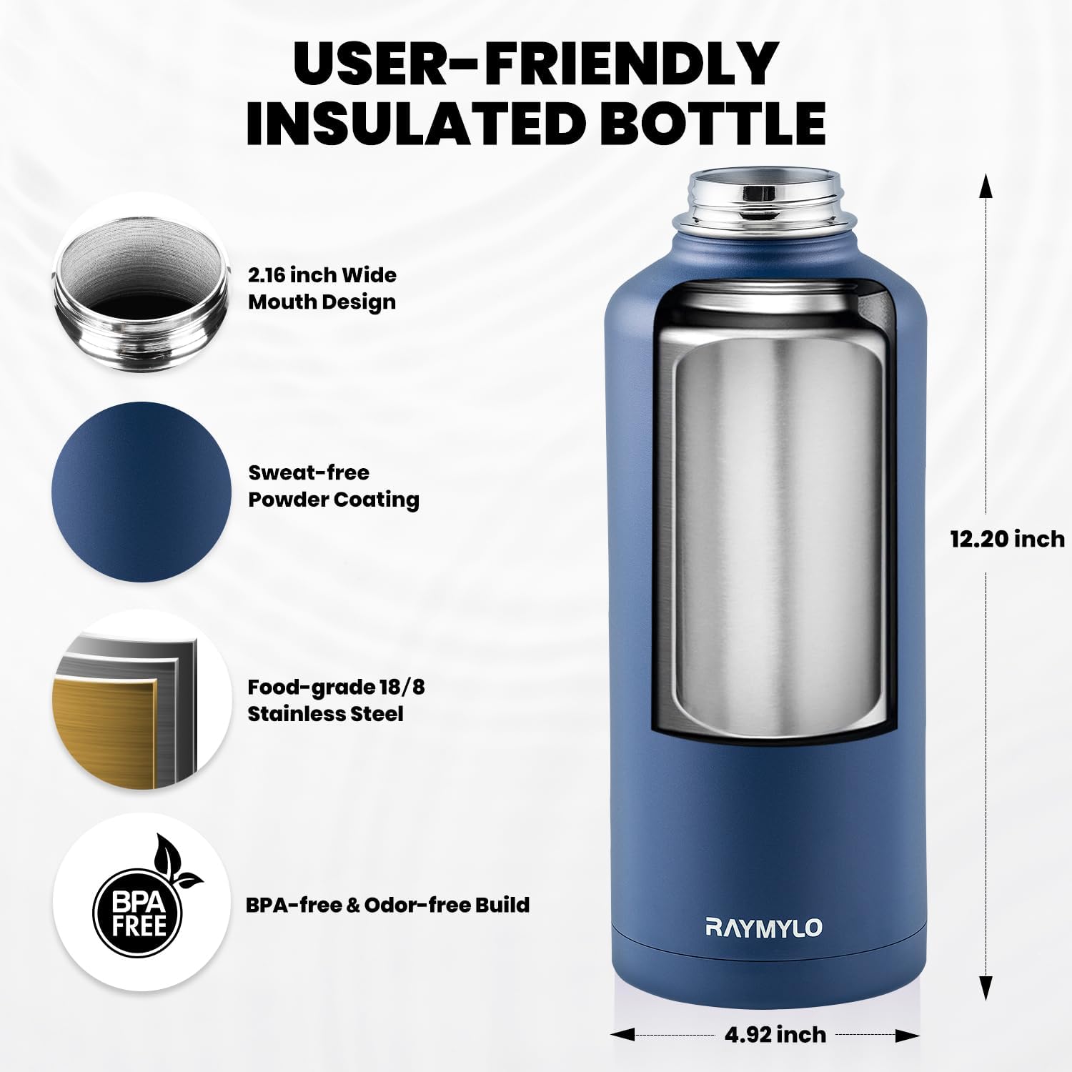 - Triple Wall Insulation: Raymylo 87 oz Insulated Water Bottle featuring copper plated triple wall vacuum insulation, is tested to keep your drinks icy cold for up to 48 hrs and reassuring warm 24 hrs. Get this iconic water bottle to up your fitness track, you'll fall for hydrating as every sip is absolutely cool