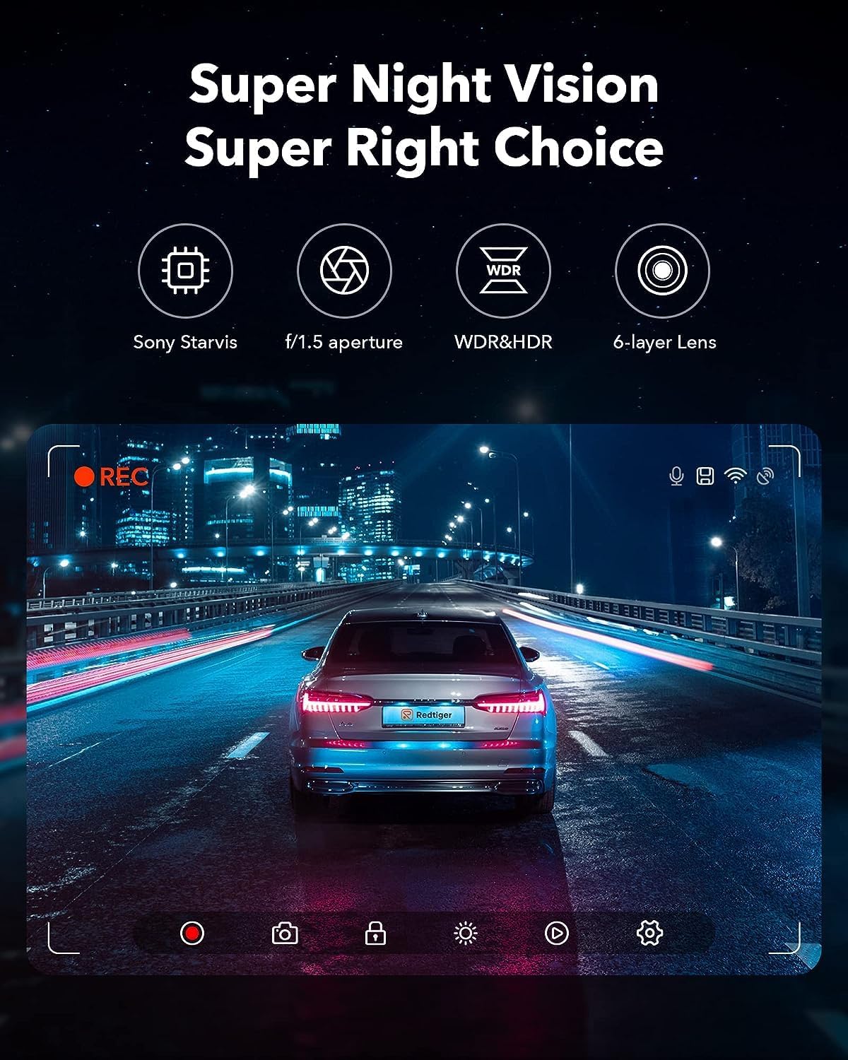 - [הקלטה קדמית ואחורית 4K+1080P] מצלמת הרכב REDTIGER F7NP לוכדת כל פרט ופרט עם וידאו קדמי מדהים באיכות 4K ובאיכות 1080P מאחור. מצלמת הרכב הזו, הכוללת את חיישן STARVIS 2 המתקדם בתוספת עדשה רחבה קדמית של 170° ואחורית של 140°, מספקת תמונות חדות יותר, תאורה מאוזנת וראיות אמינות ביום ובלילה. אידיאלית לנסיעות יומיות, טיולי כביש, נהגי שיתוף נסיעות ונהגים חדשים.