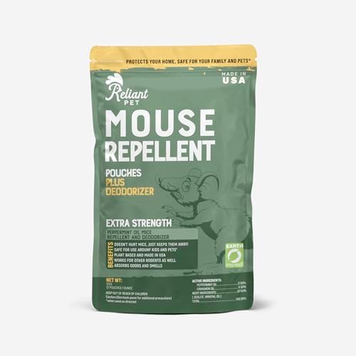שקיות דוחה עכברים לחיות מחמד של Reliant - דוחה מכרסמים תוצרת ארה"ב (12 שקיות) - הרחק מכרסמים ממנועי מכוניות - דוחה עכברים לשימוש פנימי וחיצוני - מרתיע עכברים שעובד עם שמן מנטה