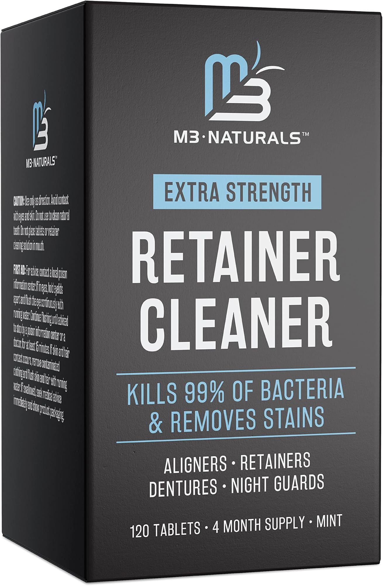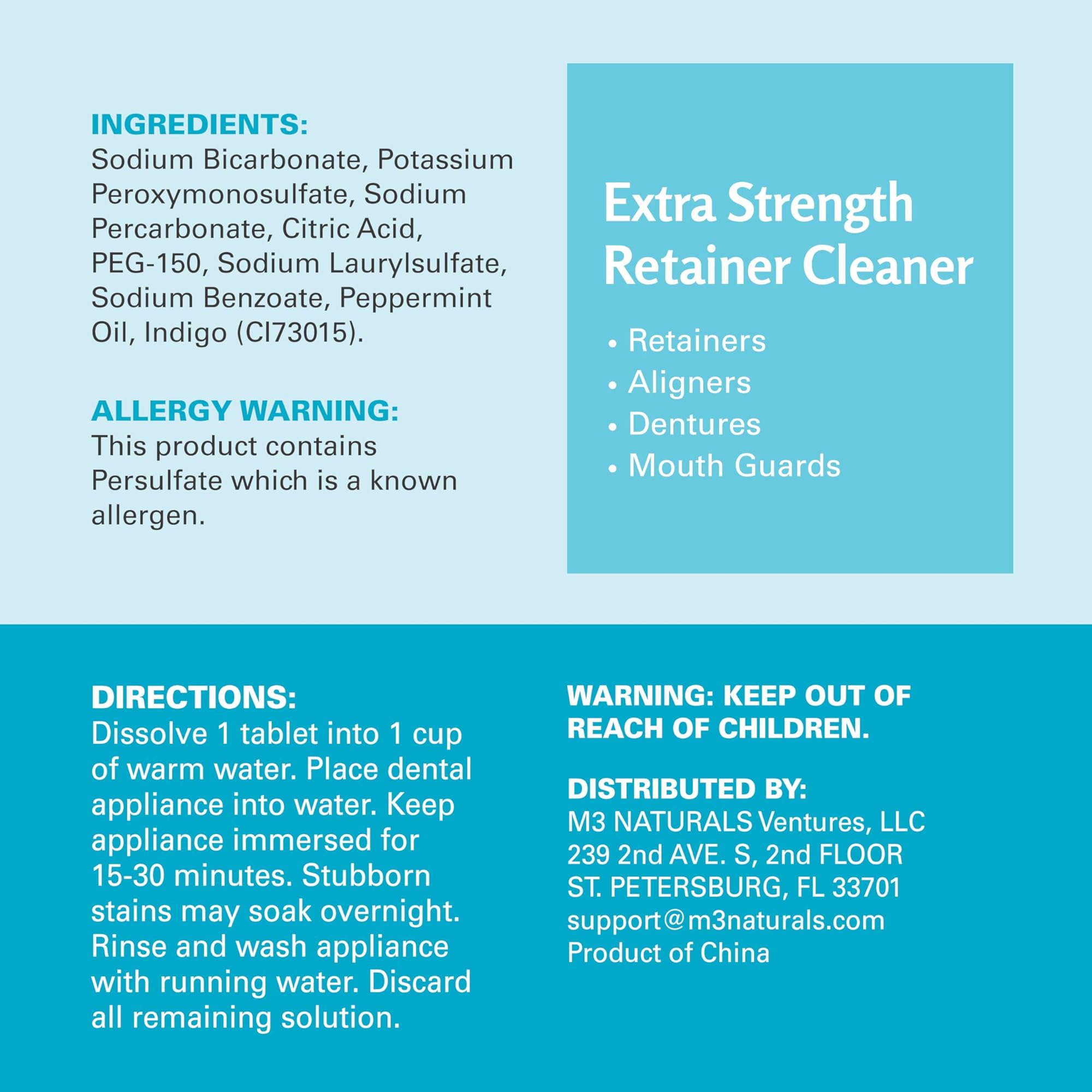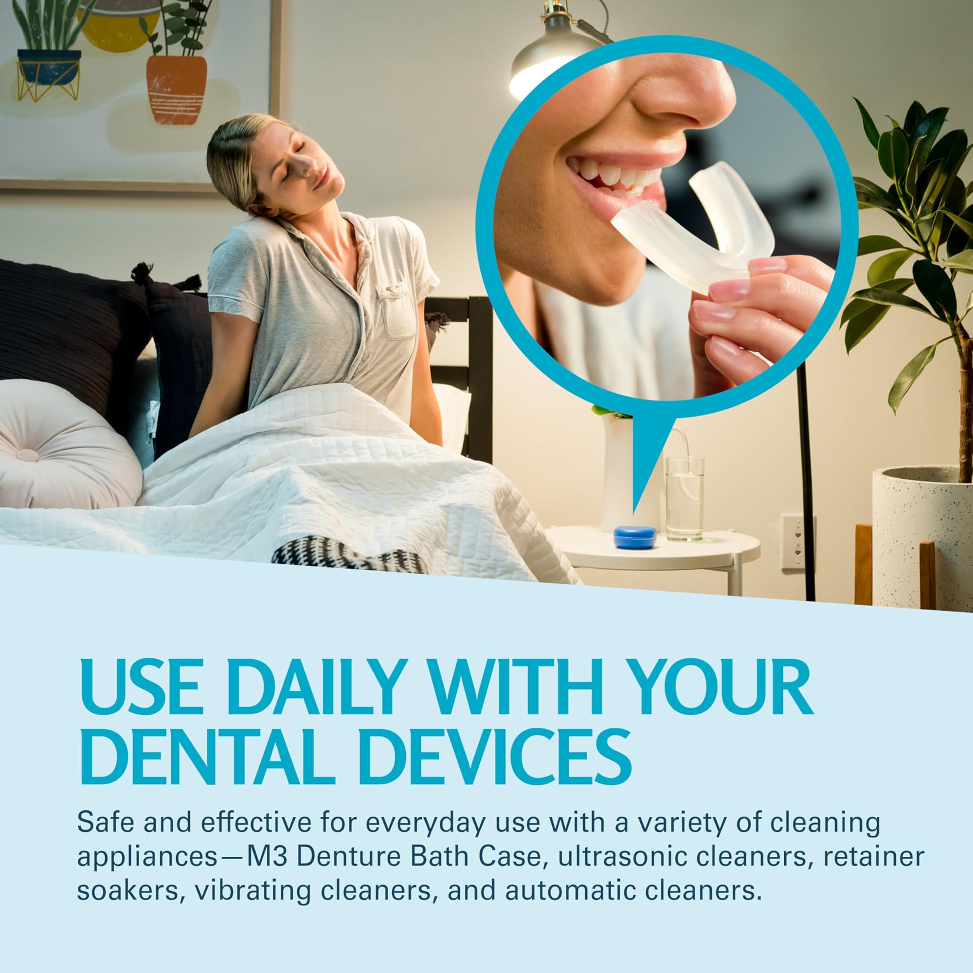 טבליות ניקוי לתותבות, מסיר ריחות, כתמי צבע ופלאק, אספקה ל-4 חודשים, חומרי ניקוי לתותבות, רטיינרים, מגני פה, אמבט לתותבות בטעם מנטה מבית M3 Naturals