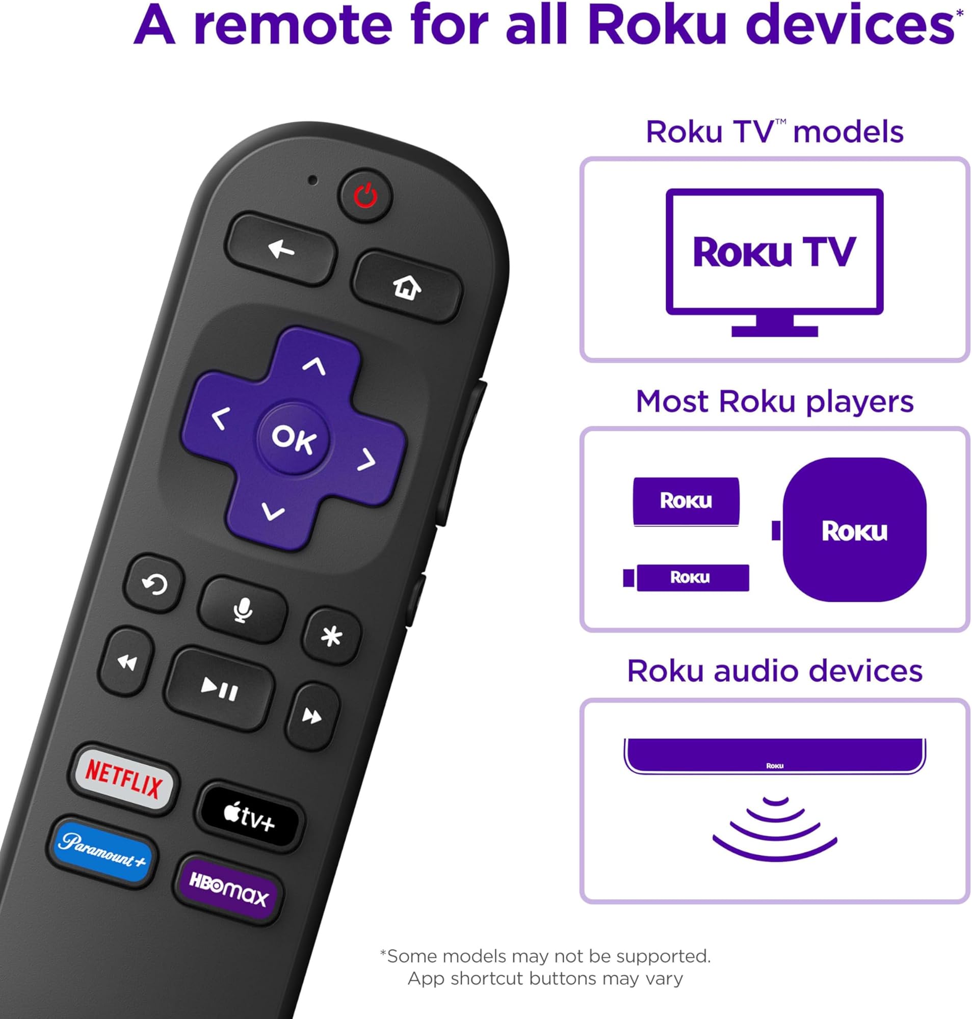 - עובד עם מכשיר ה-Roku שלך: שלט הקול של Roku עובד עם כל דגמי הטלוויזיות של Roku, מוצרי האודיו של Roku ורוב נגני Roku*