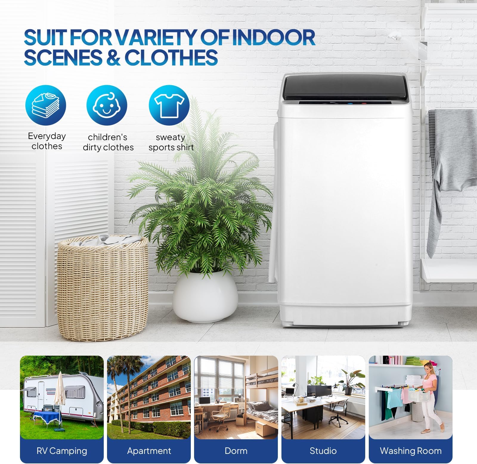 - 【אידיאלי לכל חלל】בין אם אתם גרים בדירה, קרוואן, בית או מעונות, מכונת כביסה ניידת זו היא הפתרון האידיאלי לחללים קטנים. העיצוב הקומפקטי והיעילות שלה הופכים אותה למכונת כביסה רב-תכליתית המתאימה למגוון סידורי מגורים.