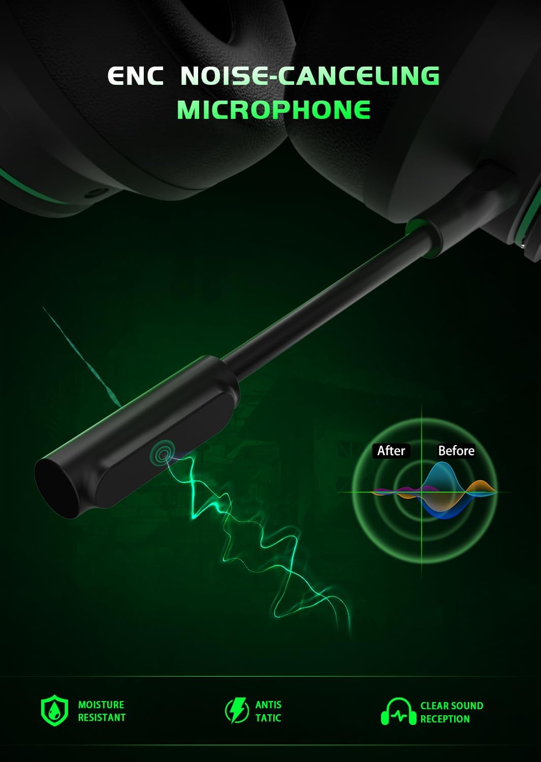 אוזניות גיימינג אלחוטיות RYR ל-Xbox Series X|S, Xbox One, PS5, PS4, Mac, Bluetooth 5.3, סאונד סראונד תלת-ממדי, אטמי אוזניים מסתובבים, אוזניות גיימינג עם מיקרופונים לביטול רעשים - שחורגרין