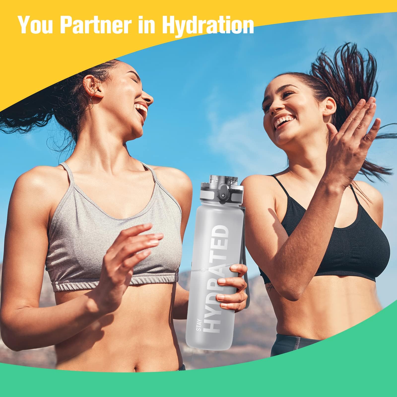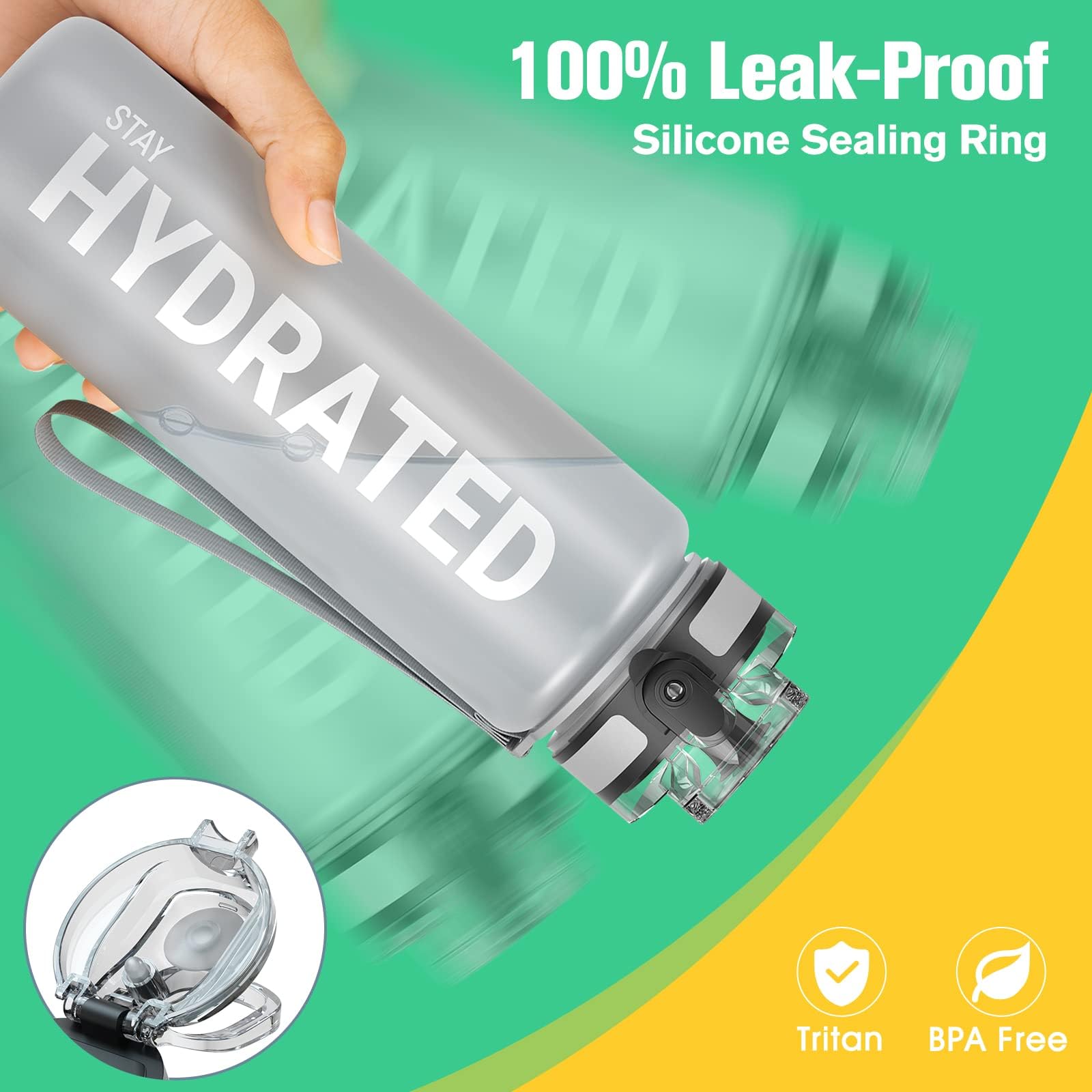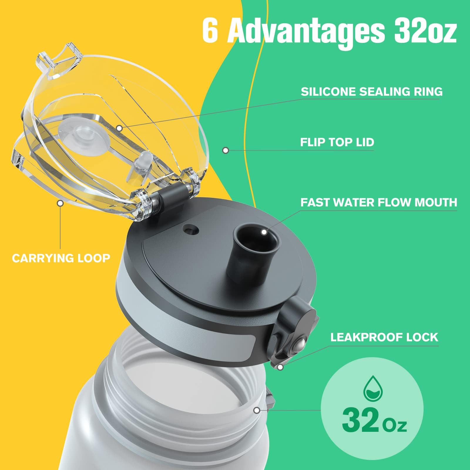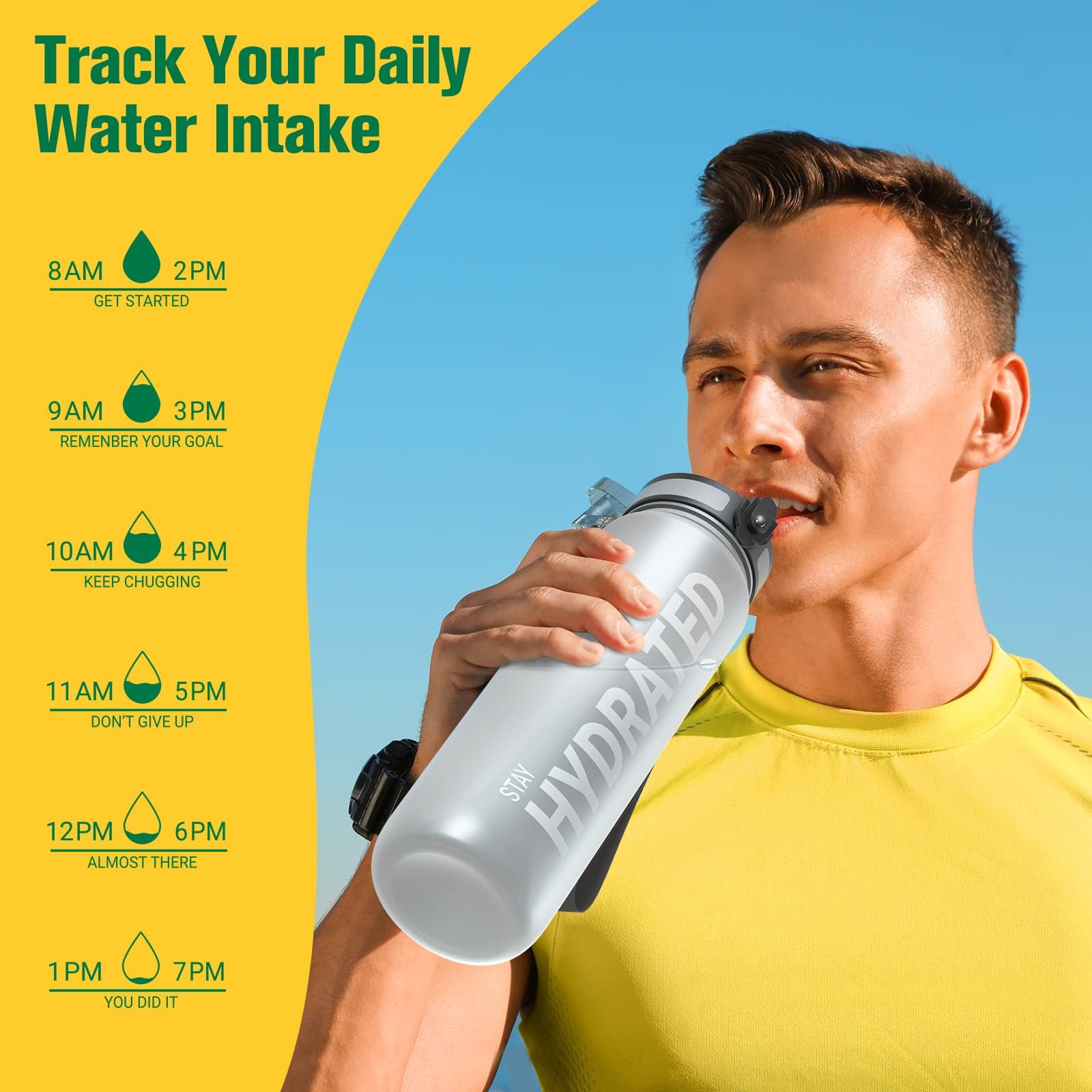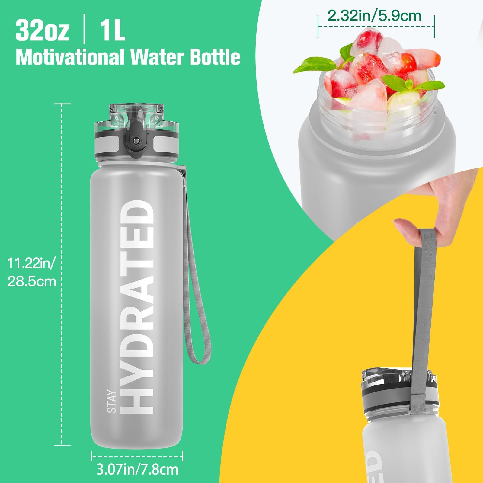 בקבוק מים Sahara Sailor 32oz, בקבוקי מים עמידים ואטומים לדליפות, מוטיבציוניים עם סמן זמן, טריטן, ללא BPA, פיה רחבה עם מברשת קלה לניקוי לחדר כושר, נסיעות, בית, בית ספר, משרד (בקבוק 1)
