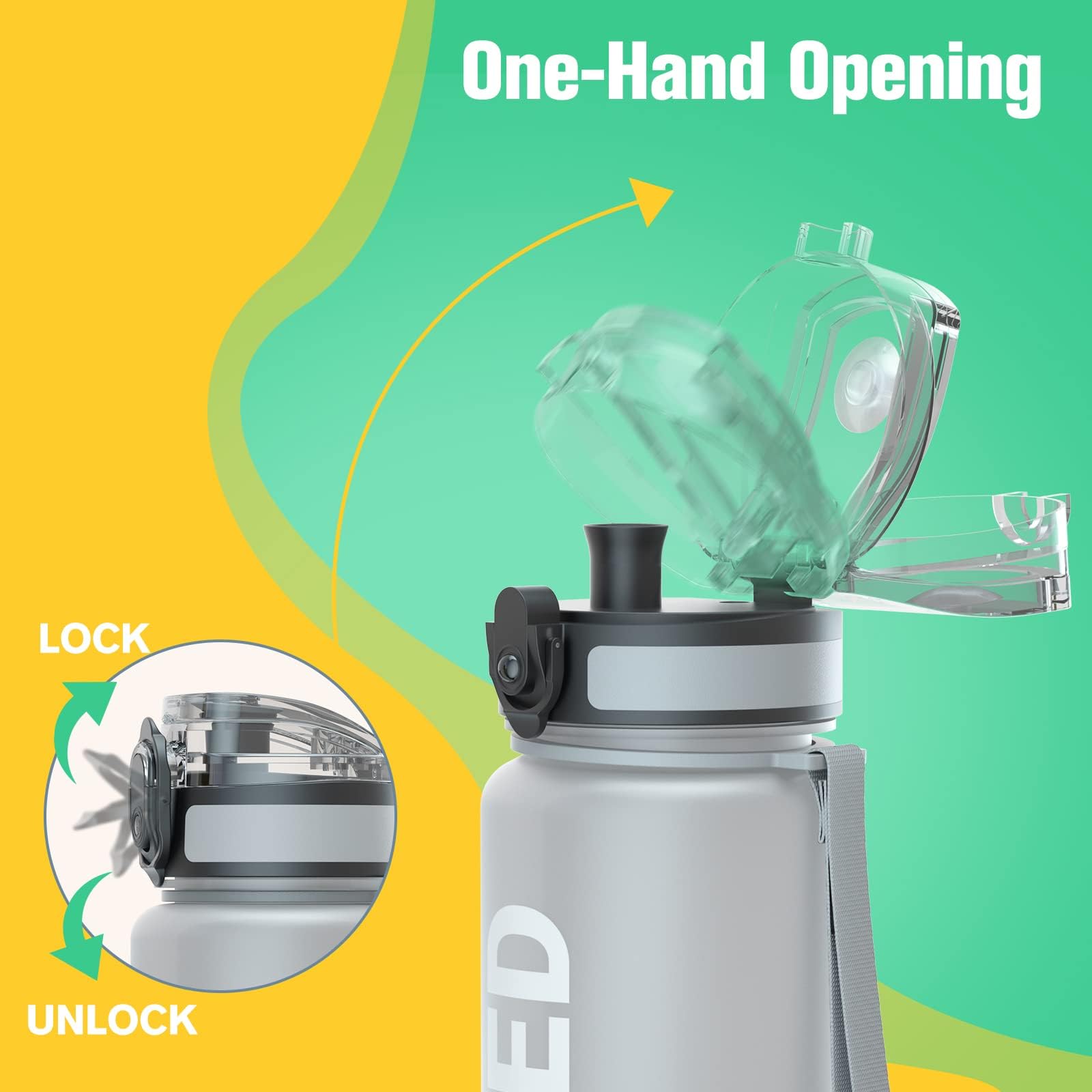 - פתיחה קלה אך אטומה לדליפות: בקבוק מים זה כולל מכסה אטום לדליפות עם נעילת היפוך כדי למנוע דליפות כשאתם זורקים אותו לתיק. המכסה כולל מנגנון היפוך כך שתוכלו לפתוח אותו בקלות ביד אחת ולחיצה אחת בלבד.