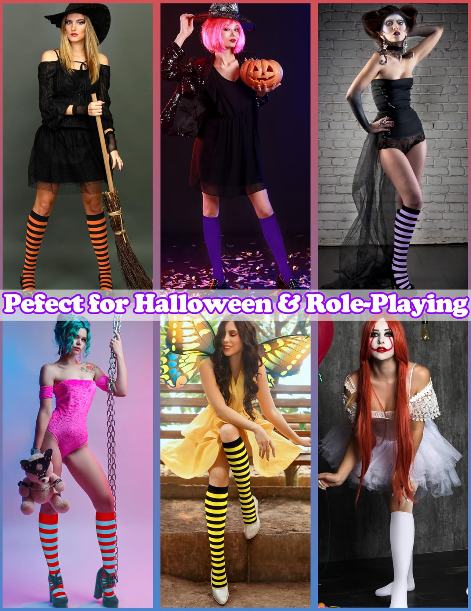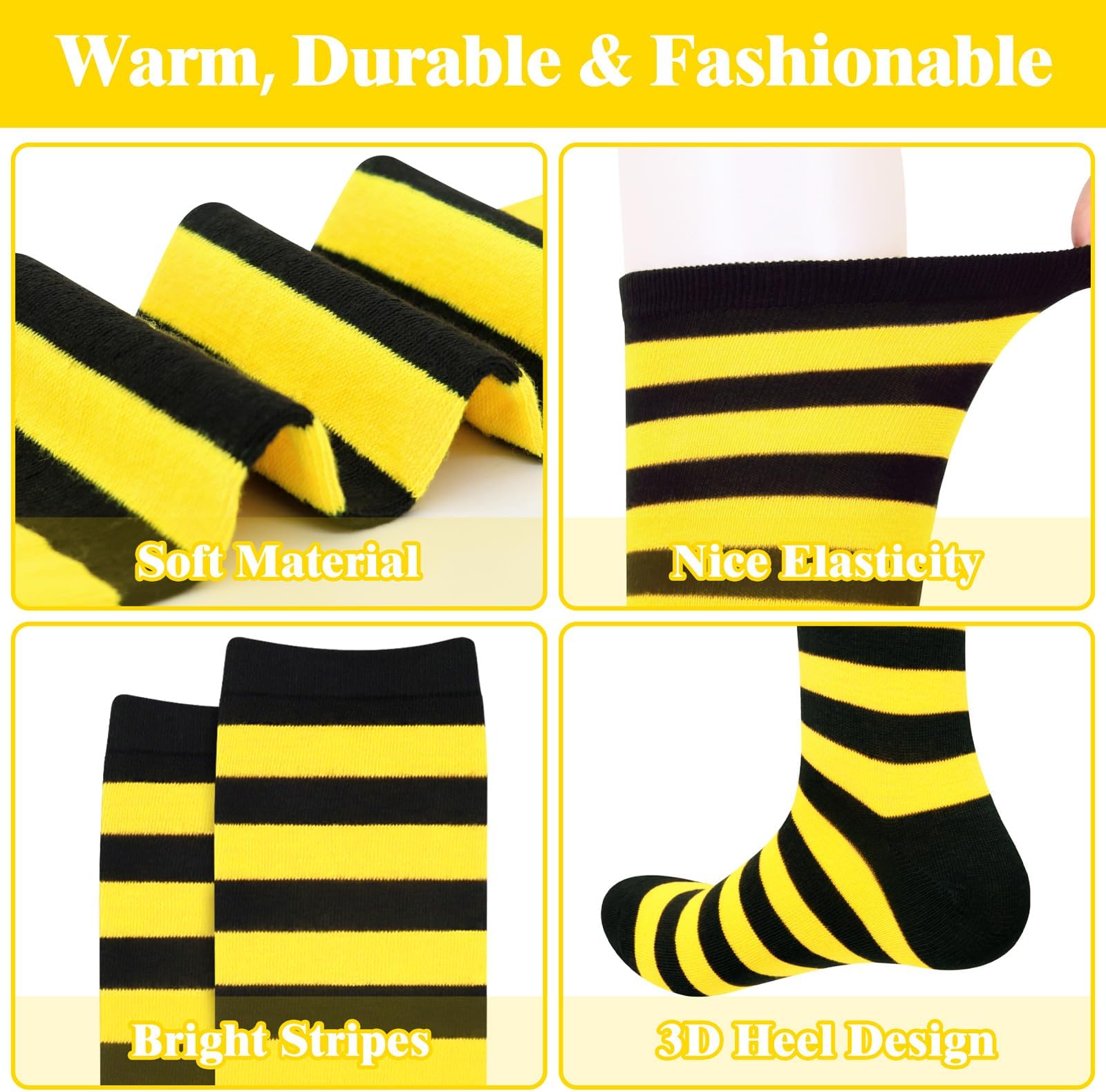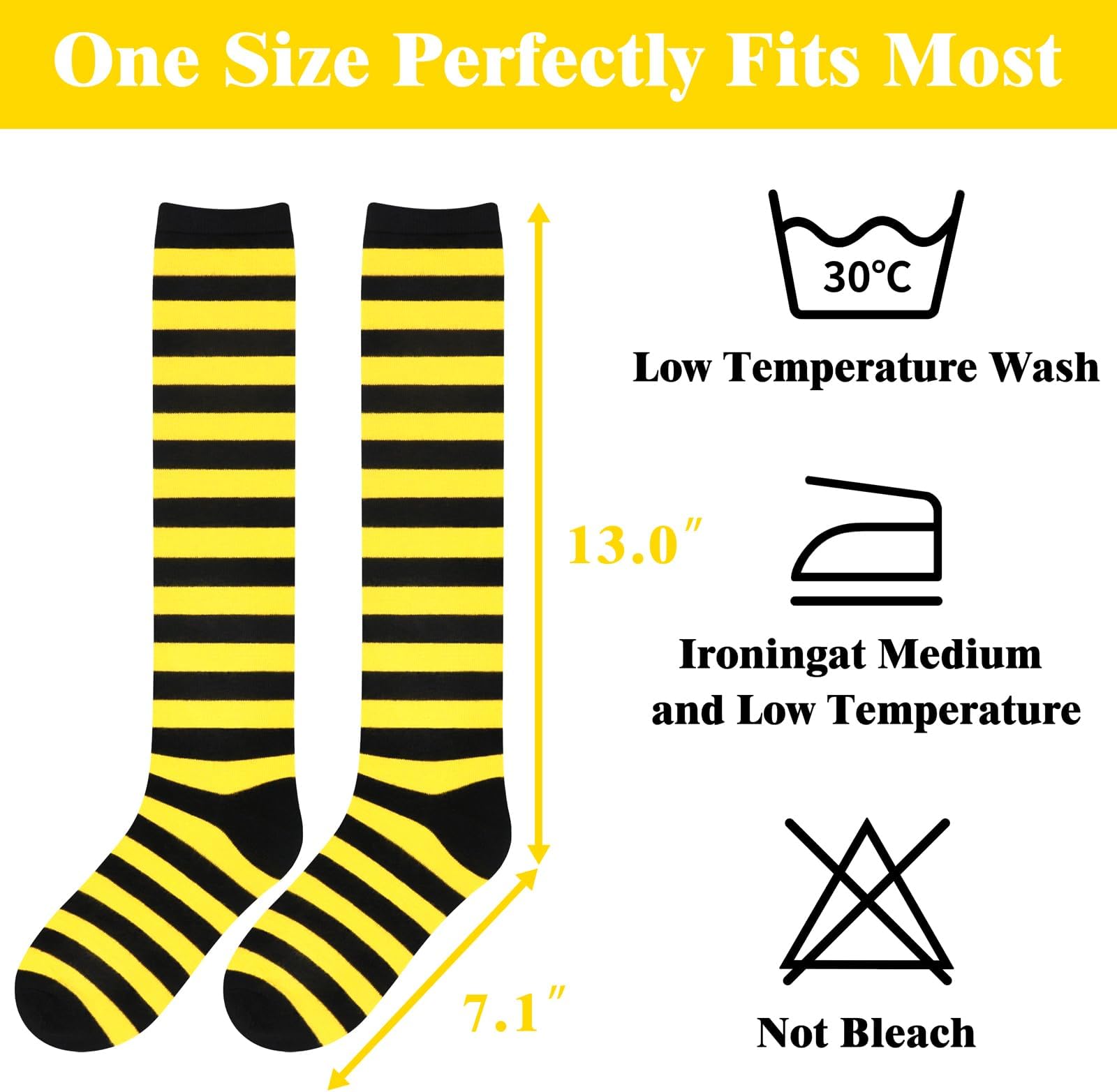גרבי פסים שחורים וצהובים של Sarfel, גרביים צהובות עם פסים, גרביים גבוהות לברך, גרב דבורה לנשים, תחפושת ליל כל הקדושים, גרב גבוהה לברך ליל כל הקדושים
