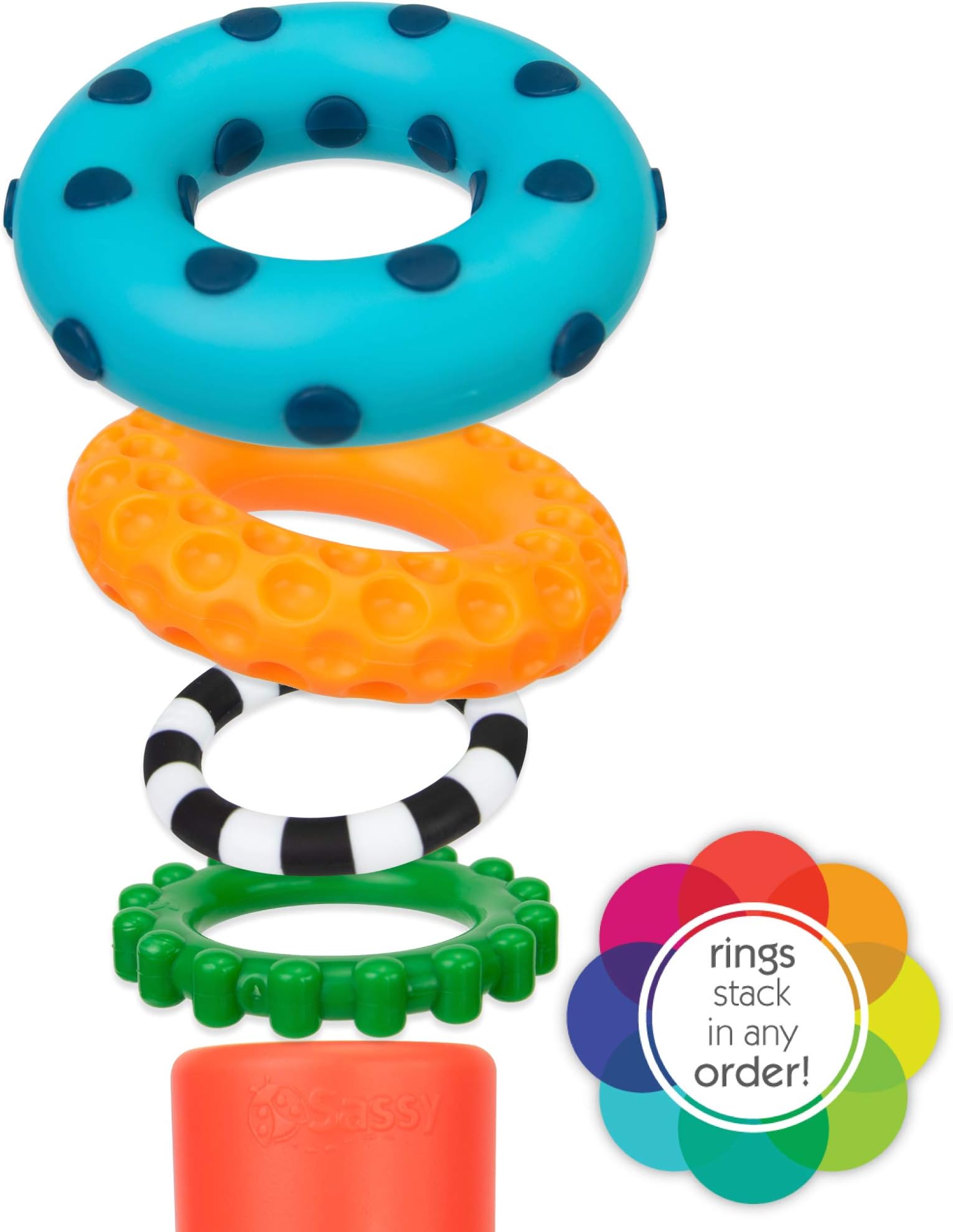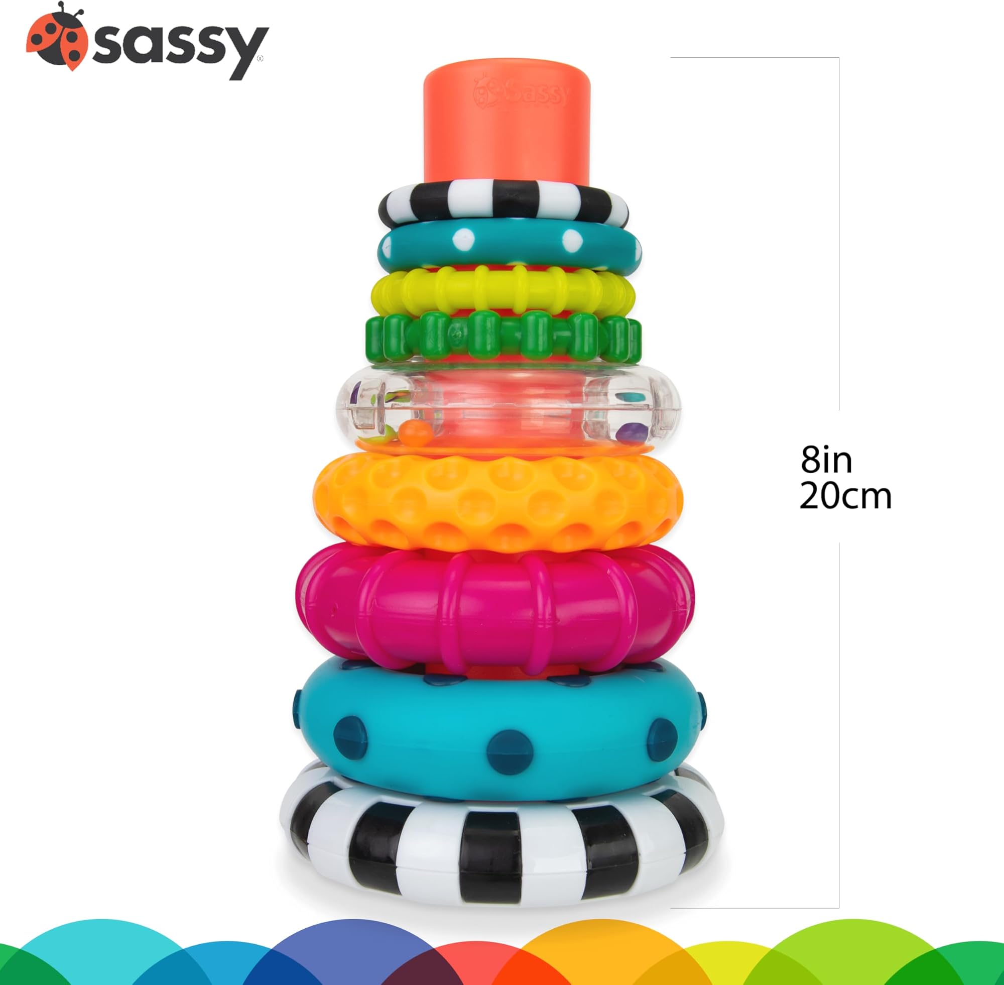 צעצוע למידה מסוג Sassy Stacks of Circles, טבעת ערימה, גיל 6+ חודשים, רב תכליתי, סט של 9 חלקים
