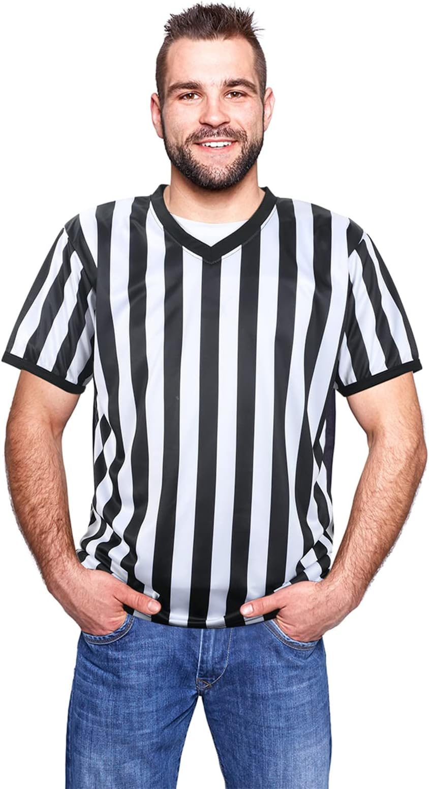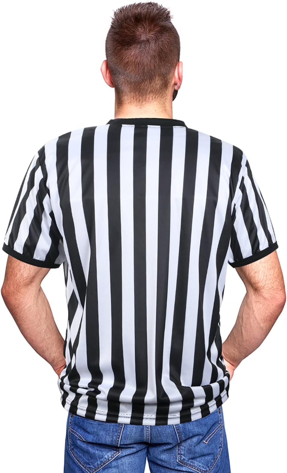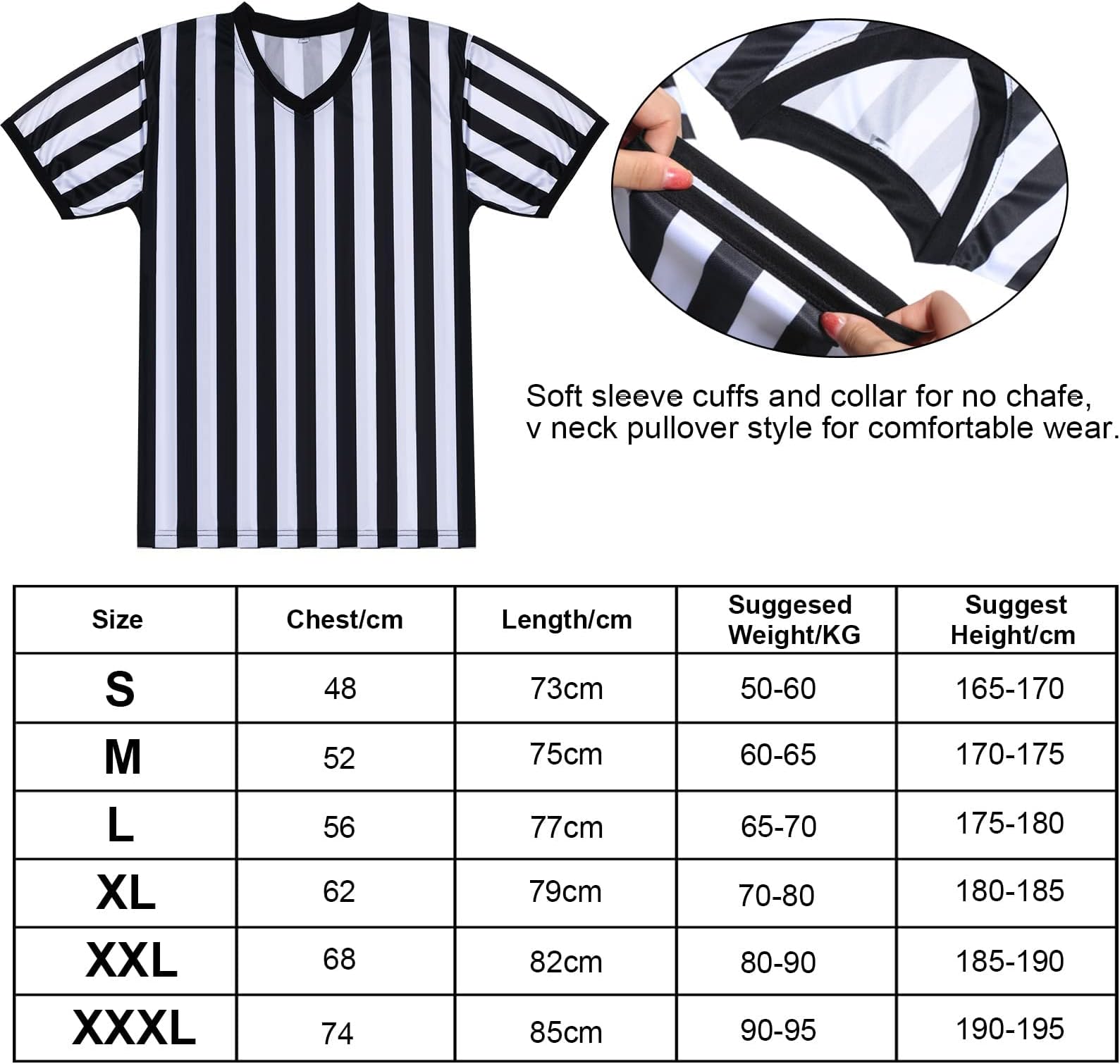 מדים רשמיים לגברים של SATINIOR עם פסים שחורים ולבנים, חולצת שופט בסגנון מקצועי עם צווארון, חולצת שופט ומשרוקית מנירוסטה עם שרוך לליל כל הקדושים, כדורסל כדורגל (M)