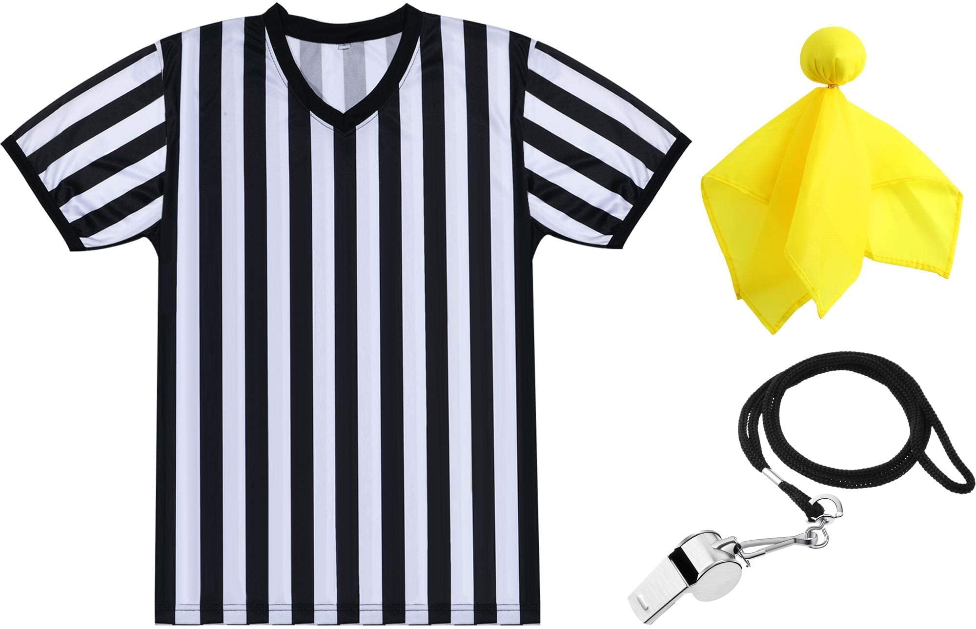 - תוכן החבילה: כולל חולצת שופט אחת עם צווארון V בסגנון מקצועי, פסים שחורים ולבנים, ומשרוקית אחת מפלדת אל-חלד עם שרוך, הפותחת את הדלת לעולם הספורט.