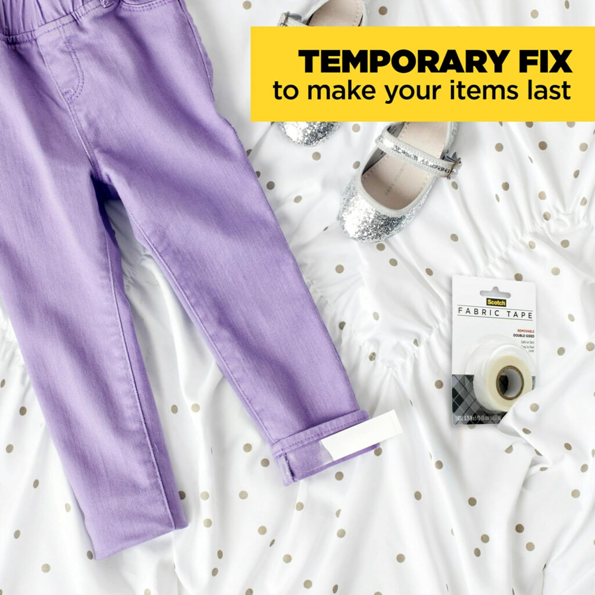 - אחיזה זמנית - אידיאלי לפריטים שלא ייכבסו, סרט דביק דו צדדי זה מדביק בדים בצורה מאובטחת מבלי שייראו.