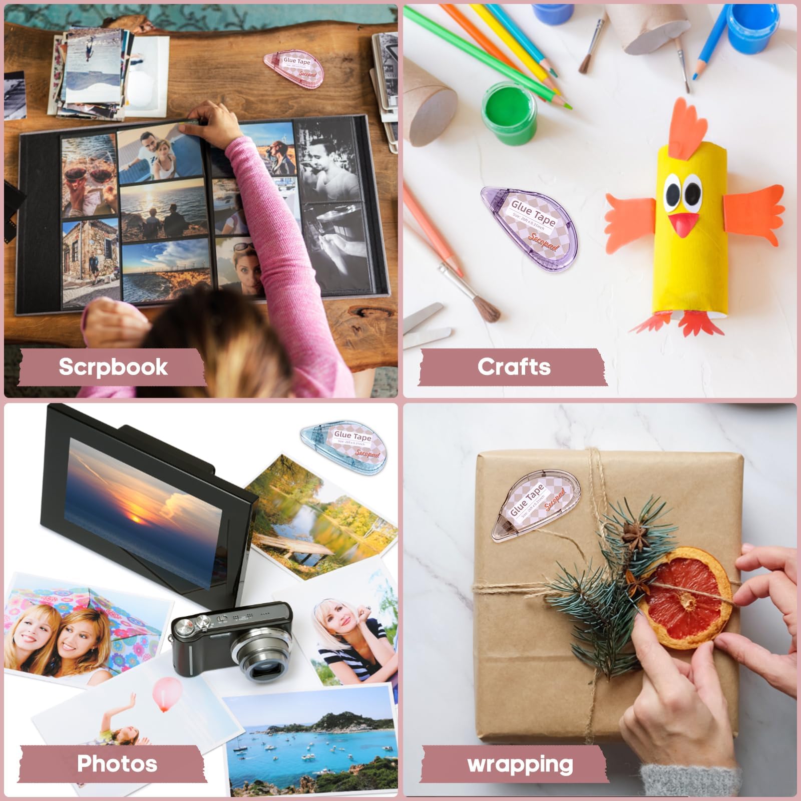- סרט הדבקה: העיצוב הקומפקטי והחומר האיכותי מבטיחים שהדבק ייצא בצורה חלקה ואחידה. סרט הדבק הדו-צדדי מארז 4 יחידות יכול לשמש בבית, בבית הספר ובמשרד. קל לשימוש למבוגרים ולילדים.