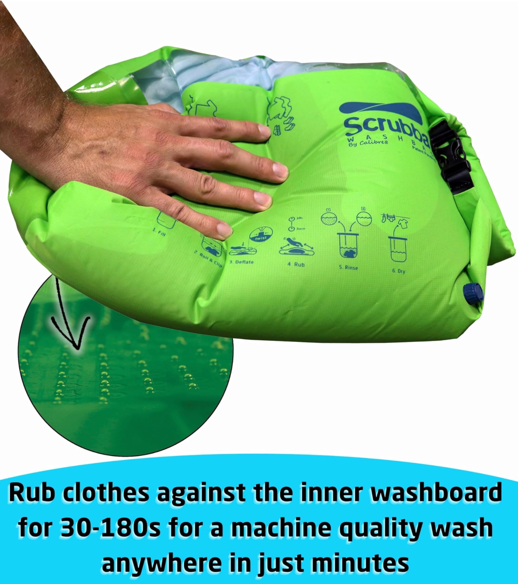 שקית כביסה ניידת של Scrubba - מכונת כביסה ידנית קלת משקל לנסיעות, קמפינג, כביסה, בגדי תינוקות - פריטים חיוניים לנסיעות, מתנה - לשימוש עם אבקת כביסה/סדינים - 140 מ"ל.