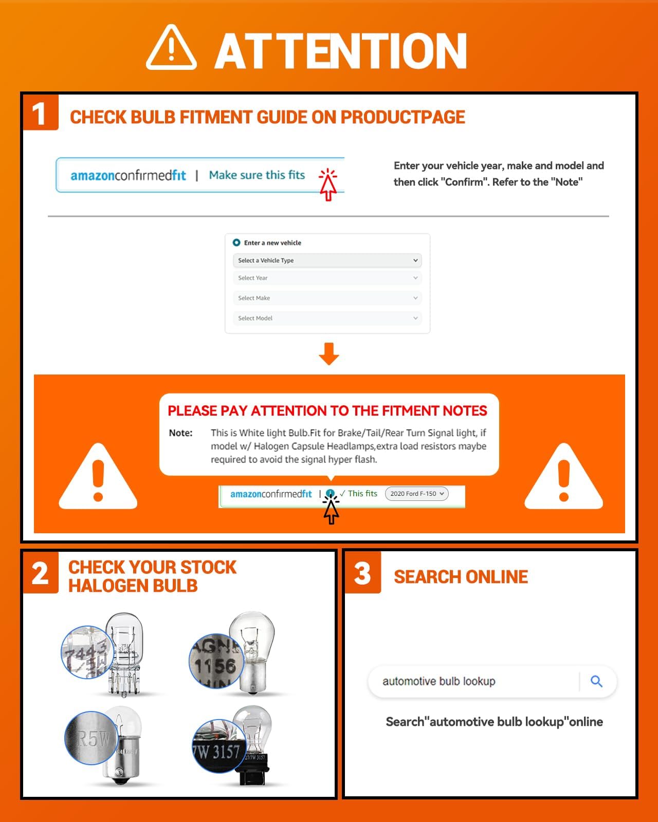 - 【הערה חשובה】: אנא השתמשו בכלי ההתאמה של אמזון כדי לאשר אם הרכב שלכם מתאים לדגם 3157. אם אינכם בטוחים, אנא צרו קשר עם צוות שירות הלקוחות שלנו. מוצר זה מגיע עם מפענח ודורש חיווט נוסף. אם יש לכם שאלות, אל תהססו לפנות אלינו.