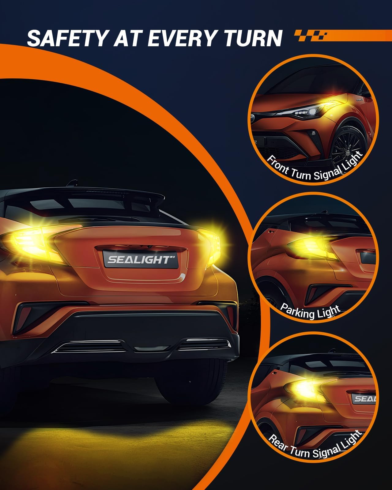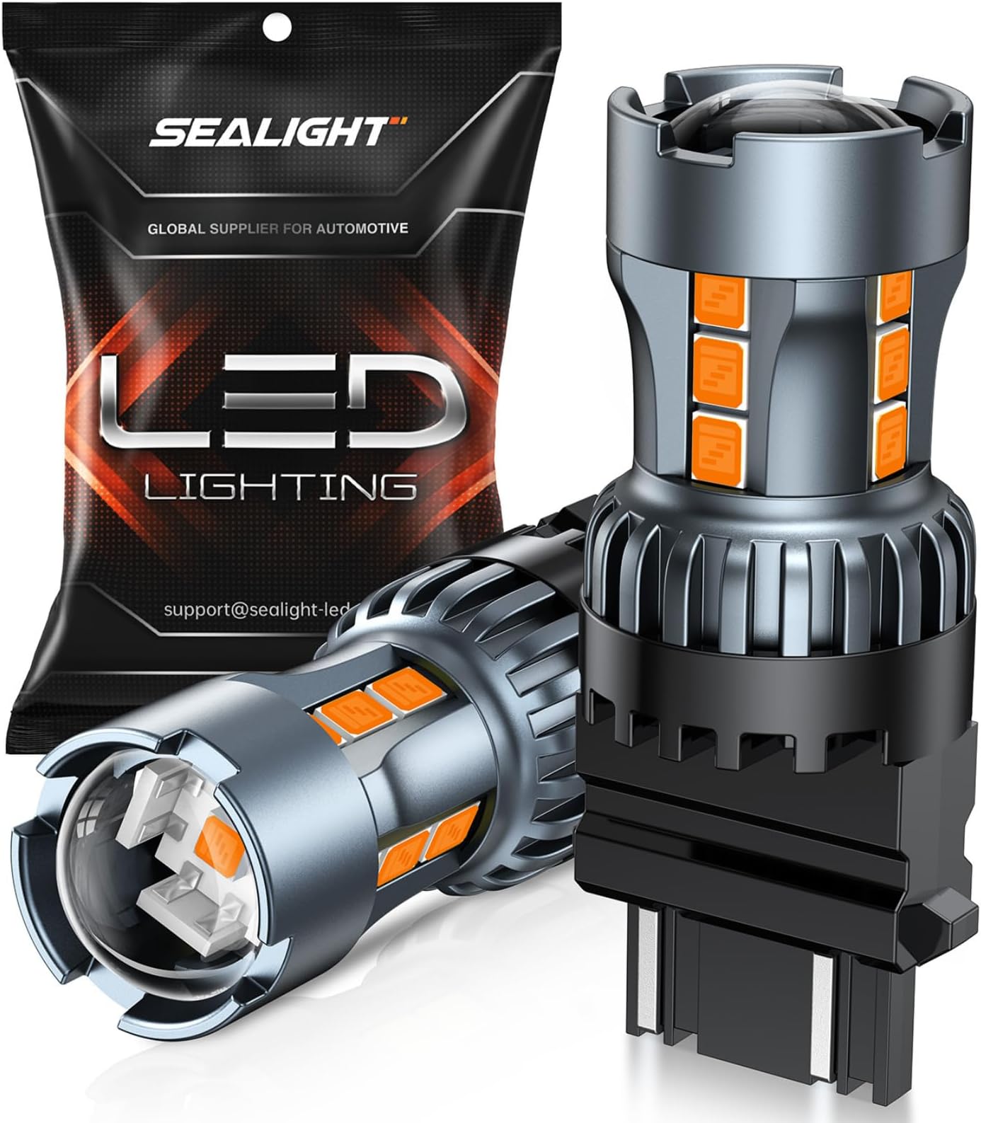 נורת LED SEALIGHT 3156 3157 איתות ענבר, נורת LED 3056 3457A 4057 4157 עם מקרן HD ונגד נוסף להחלפת איתות קדמי אחורי, אור סמן חניה מהבהב, 2 יחידות