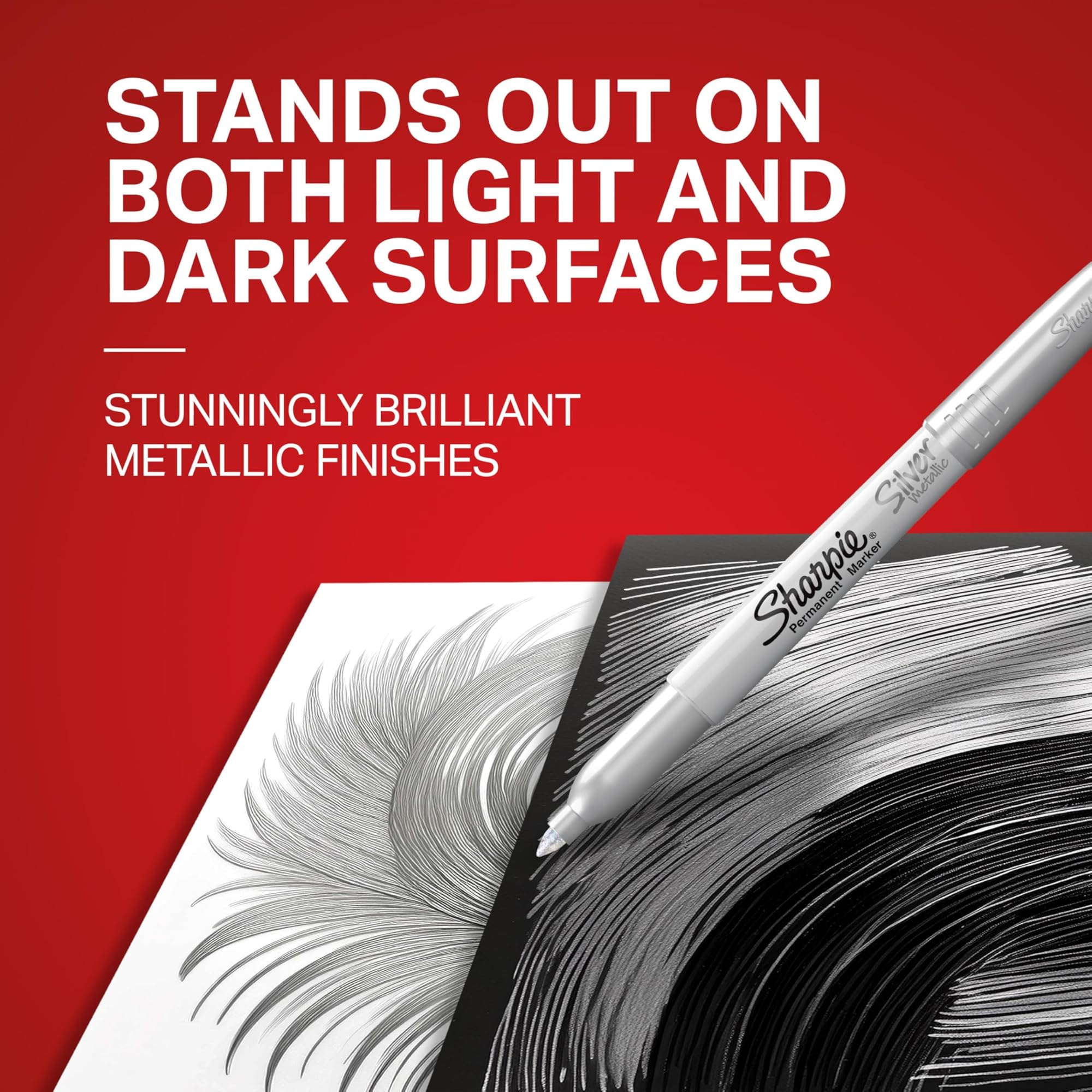 טושים פרמננטיים מטאליים של Sharpie, חוד דק, כסופים, 2 יחידות