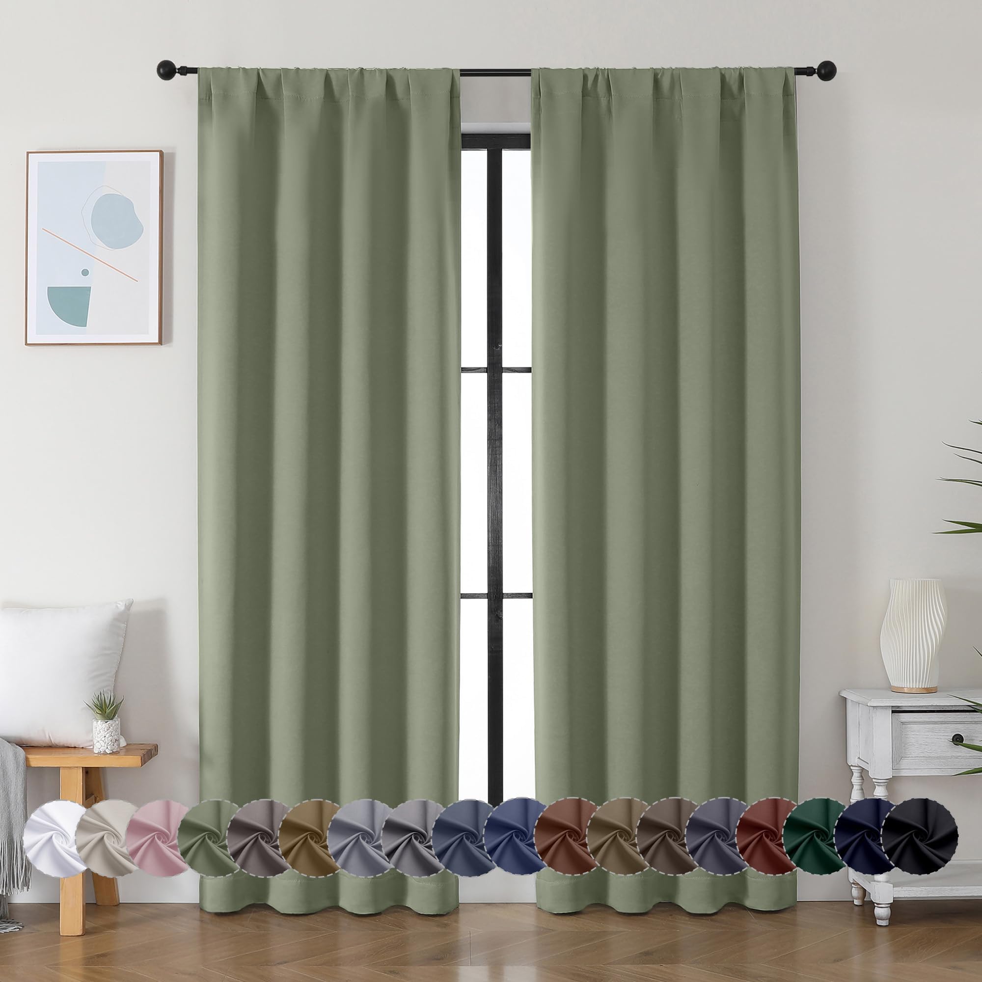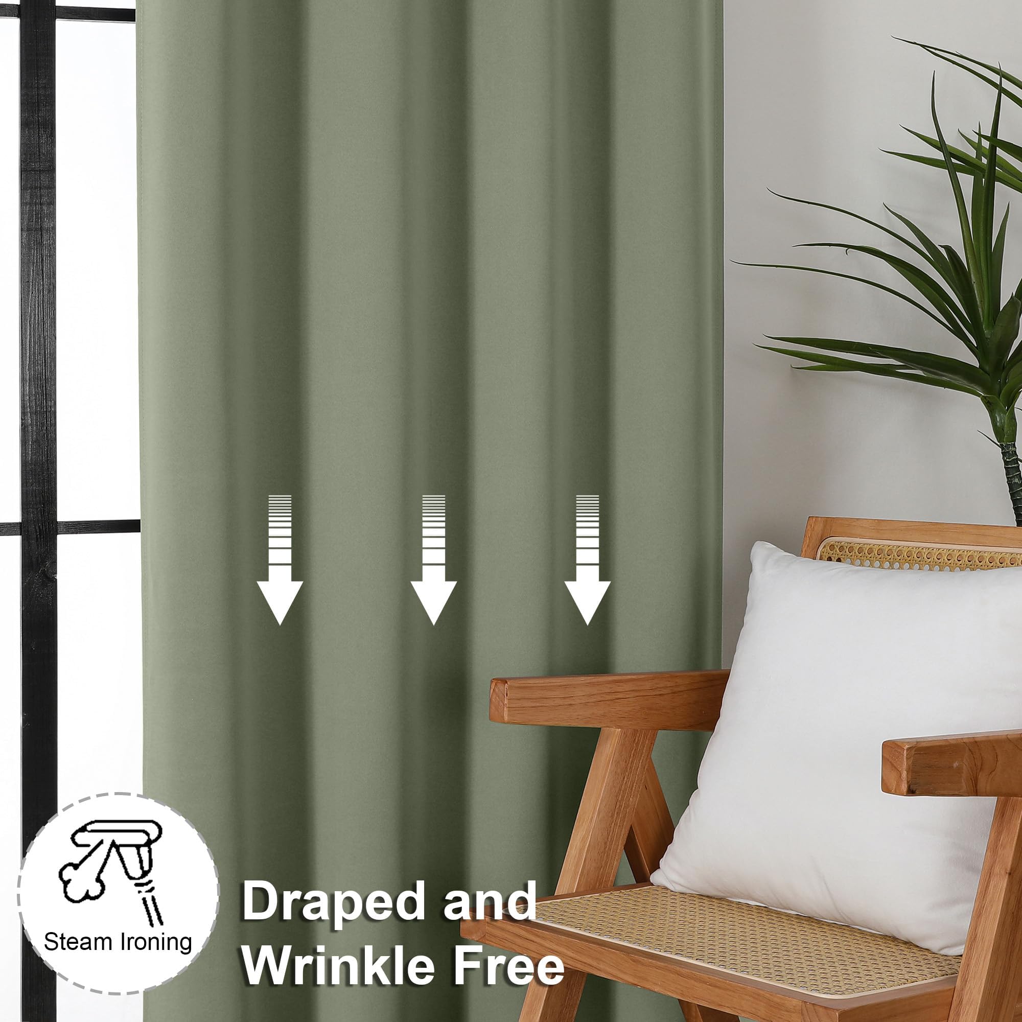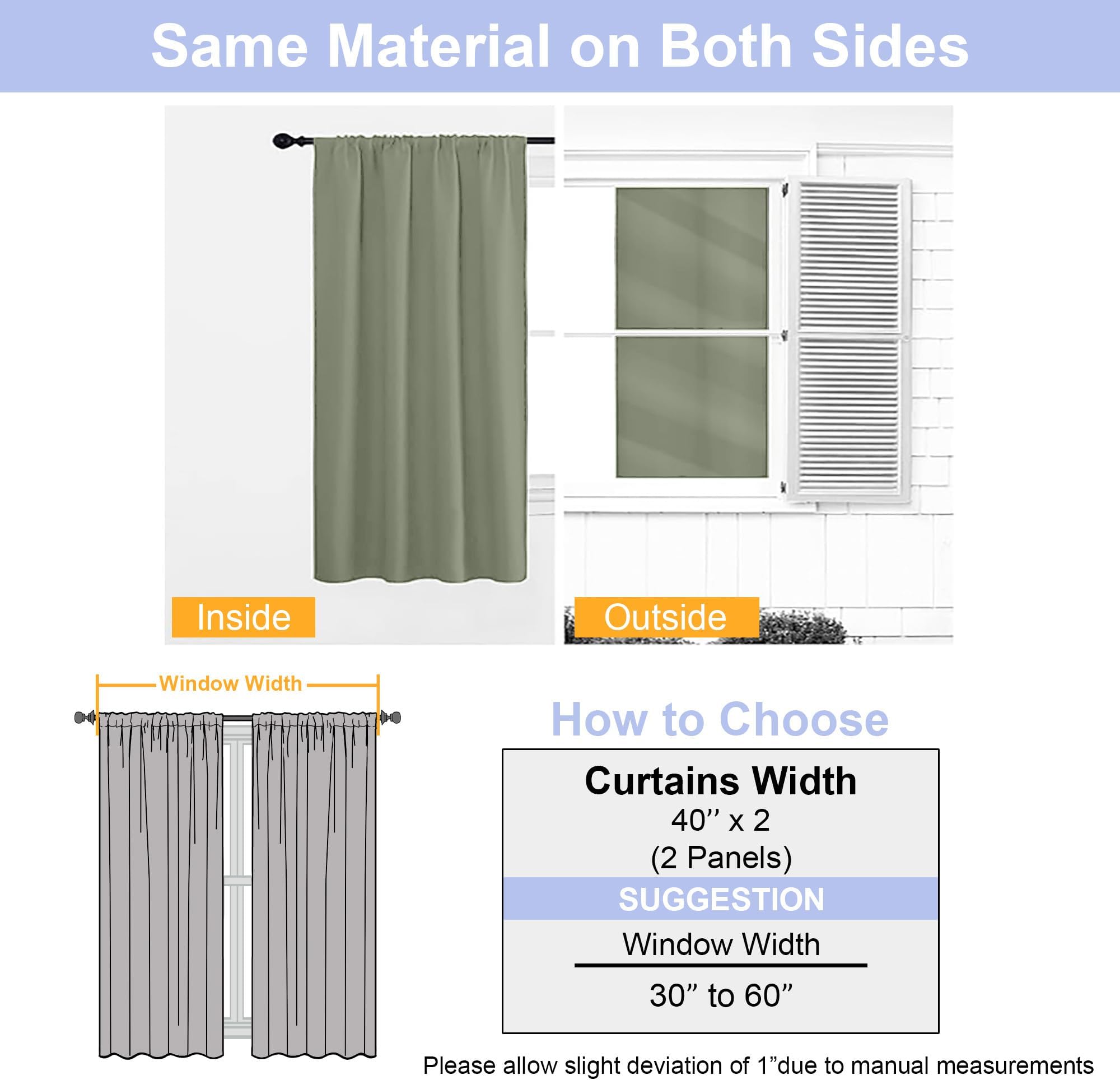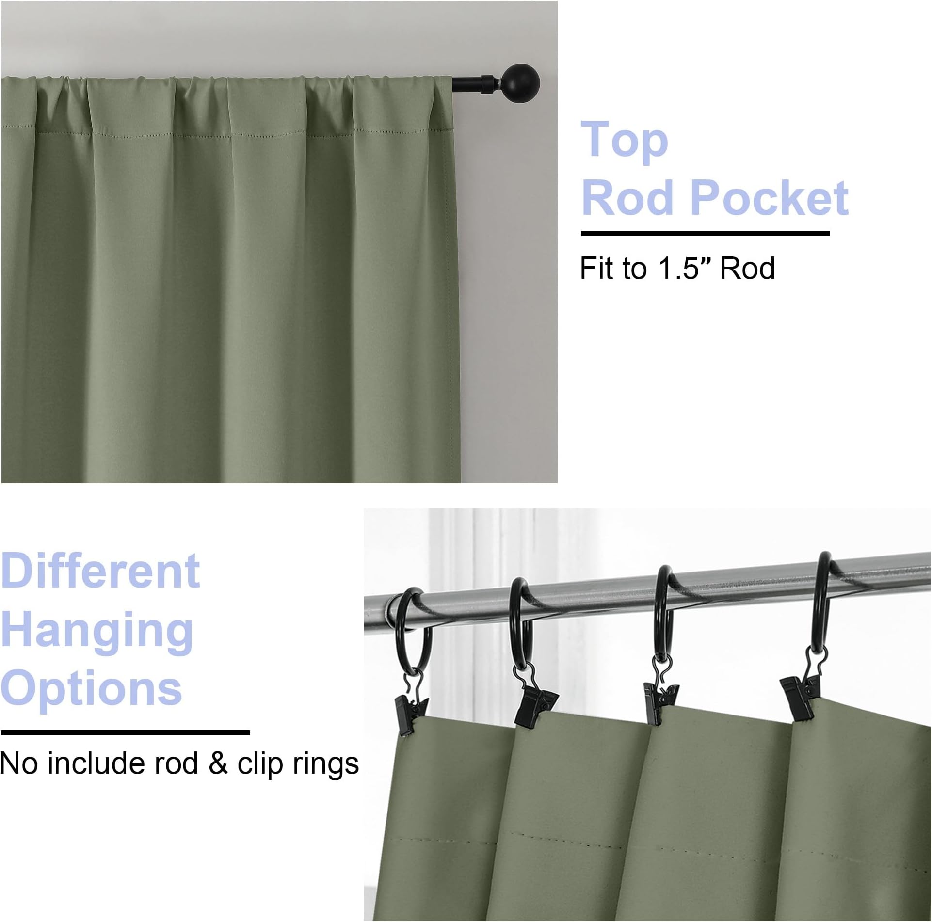 וילונות האפלה ירוקים מרווה של Simplebrand Ava לחדר שינה באורך 84 אינץ', סט של 2 פאנלים, וילונות פרטיות מבודדים תרמית מוצקים לסלון, רוחב 40 x אורך 84 אינץ', ירוק מרווה