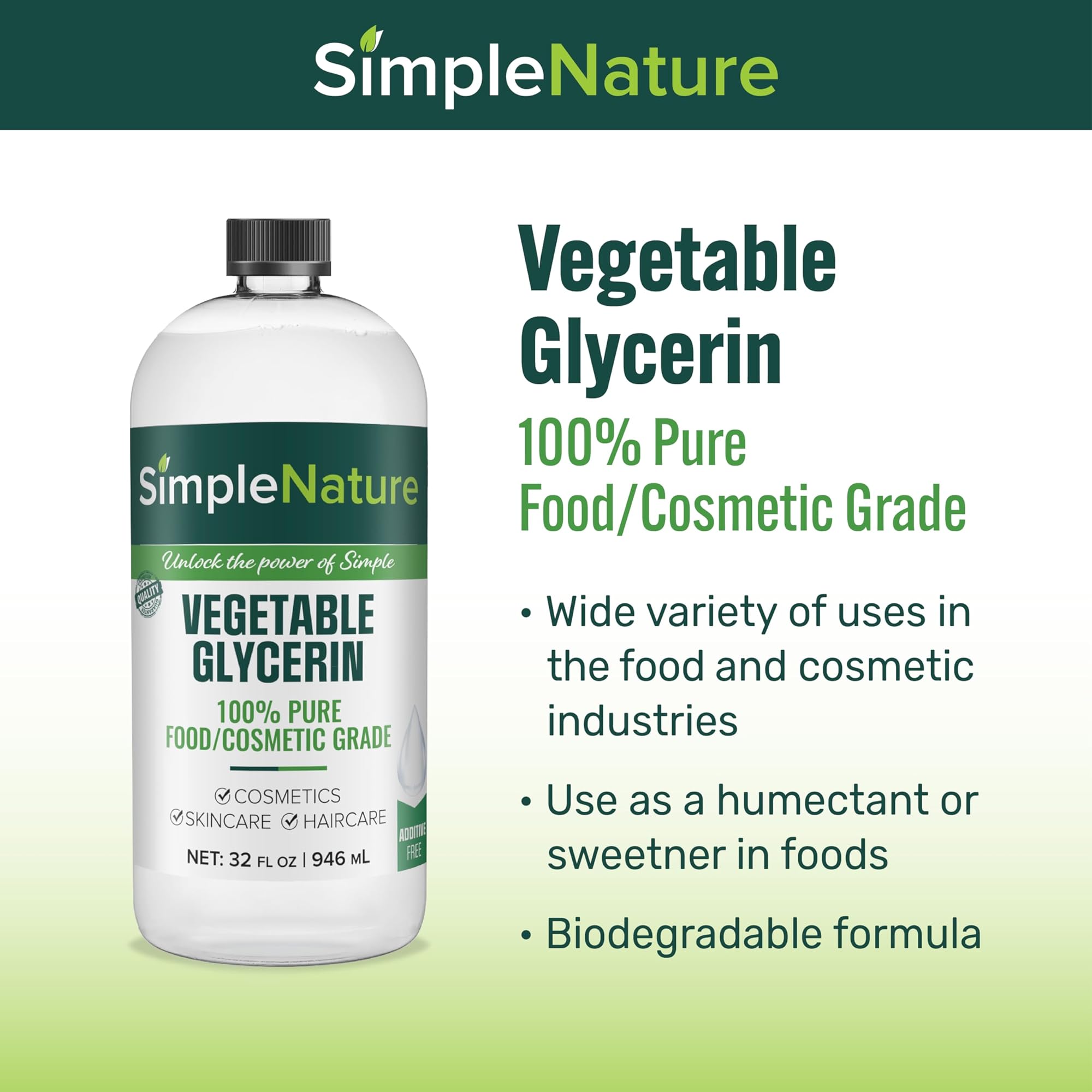 גליצרין צמחי טהור 100% של SimpleNature - 32 אונקיות - טבעי טהור בדרגת מזון/קוסמטיקה לטיפוח עור, טיפוח שיער, קוסמטיקה, ייצור סבונים, מלאכת יד - מרכך ולחות רב תכליתי