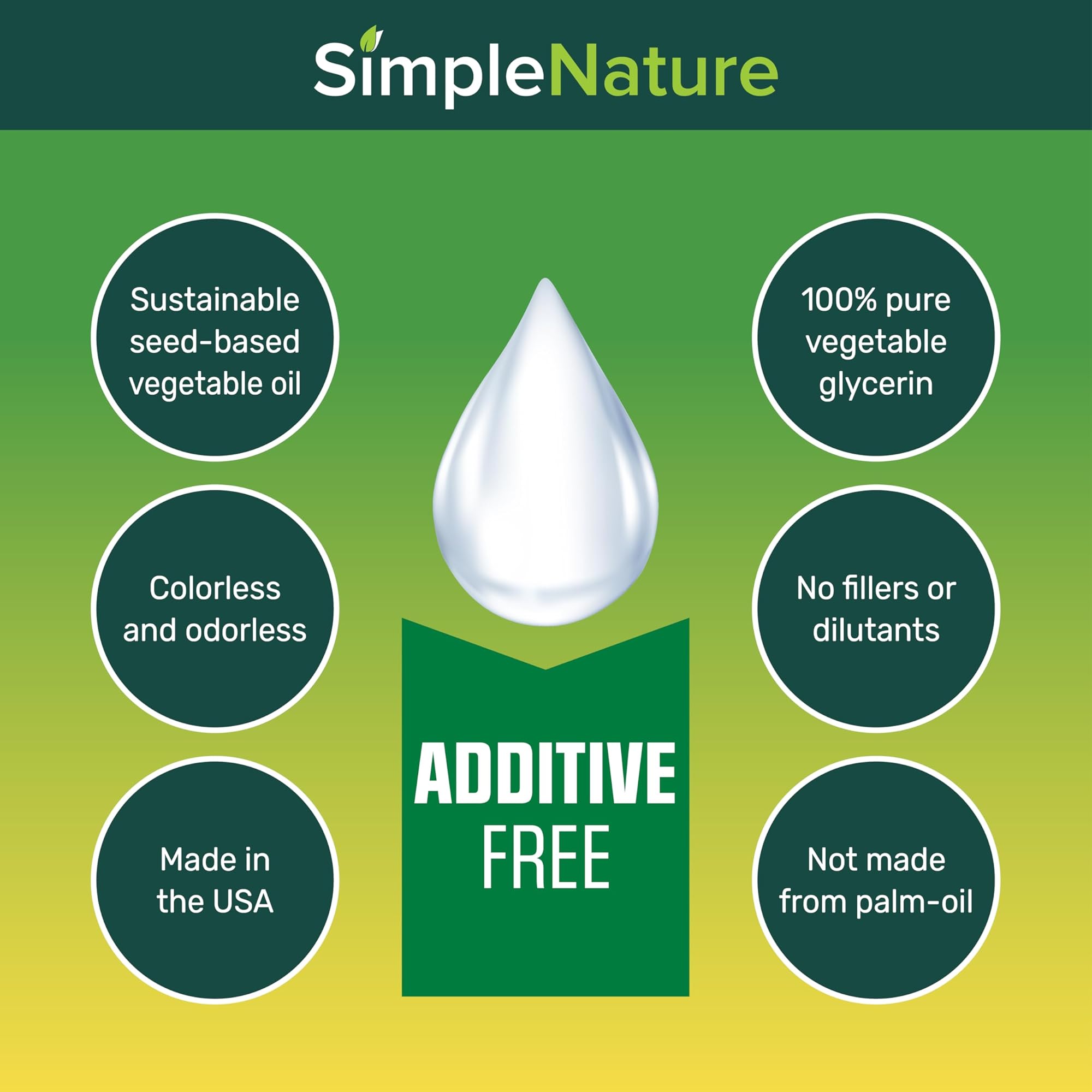 גליצרין צמחי הוא מוצר טיפוח אישי ובסיסי פופולרי ובעל ערך רב. צמיג באופן טבעי, חסר צבע, חסר ריח, עם טעם מתוק, תכונותיו הופכות אותו למתאים למגוון רחב של שימושים בפני עצמו או כמרכיב בפורמולות רבות. גליצרין צמחי טהור 100% של SimpleNature מיוצר בגאווה בארה"ב; איכות מובטחת - לעולם אינו מכיל תוספים, חומרי מילוי, מדללים או מרכיבים אחרים. אינו מיוצר משמן דקלים; מקורו בשמנים צמחיים בעיקר מזרעים מצפון אמריקה.