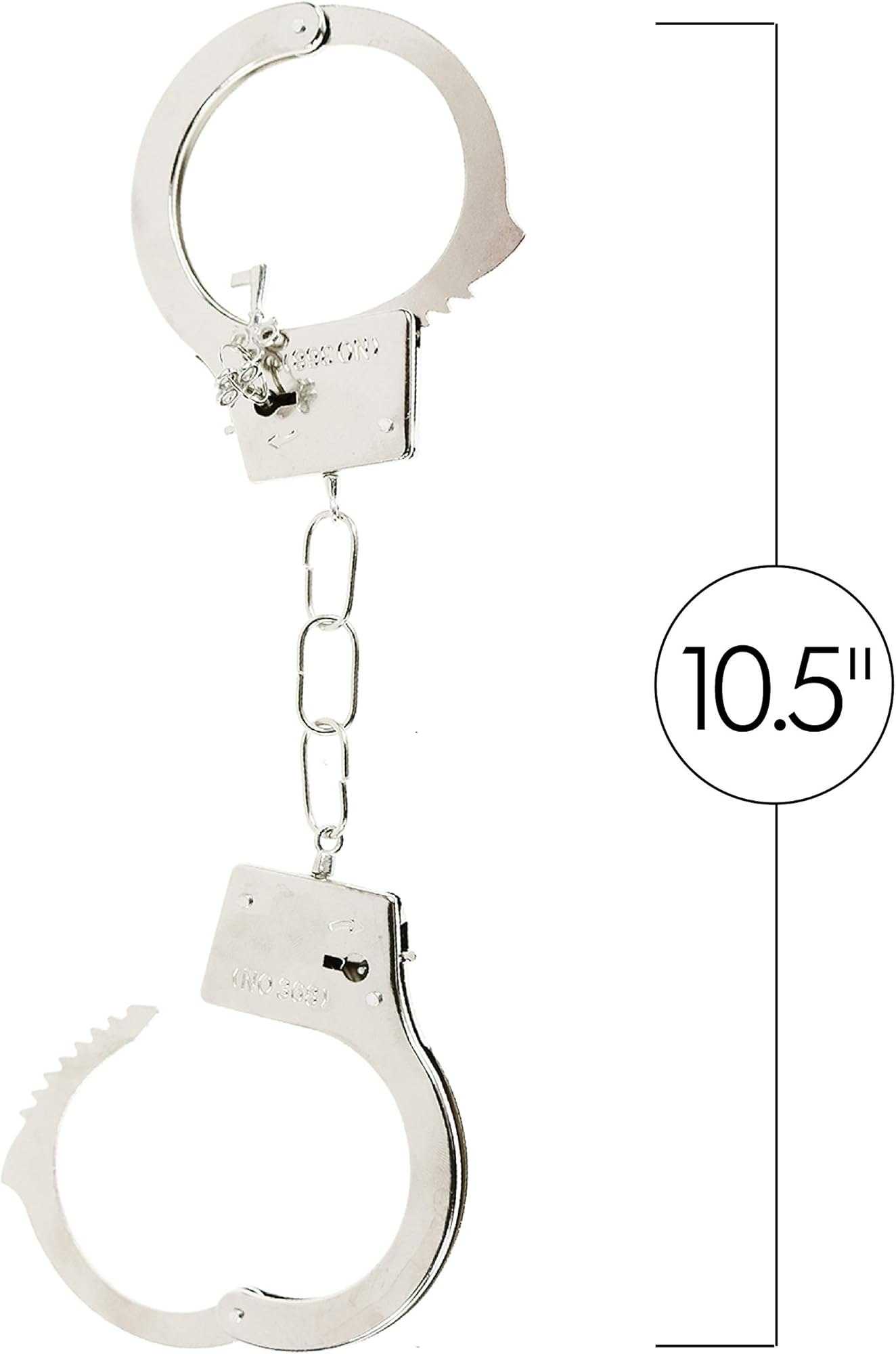 אזיקי מתכת עם מפתחות של Skeleteen - אביזרי תחפושת משטרת צעצוע ואביזרים - אזיקי שרשרת מתכת עם שחרור בטיחות ומפתח