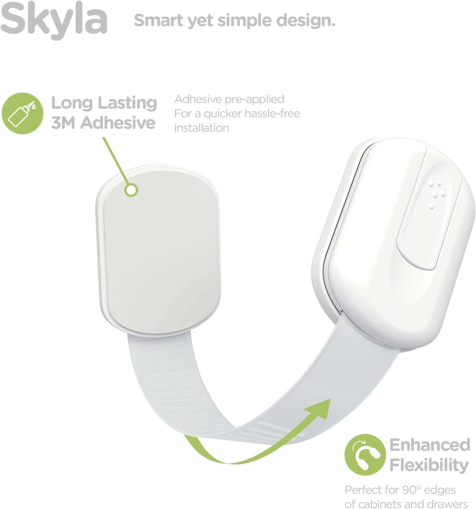 מנעולי תינוקות של SKYLA HOMES (חבילה של 8) אטימה לארונות בטיחותיים לילדים - בטוחה, מהירה וקלה, בריחים דביקים של 3M לארונות מגירה, ללא ברגים ומגנטים, רב תכליתי לרהיטים, מטבחים, תנורים, מושבי אסלה