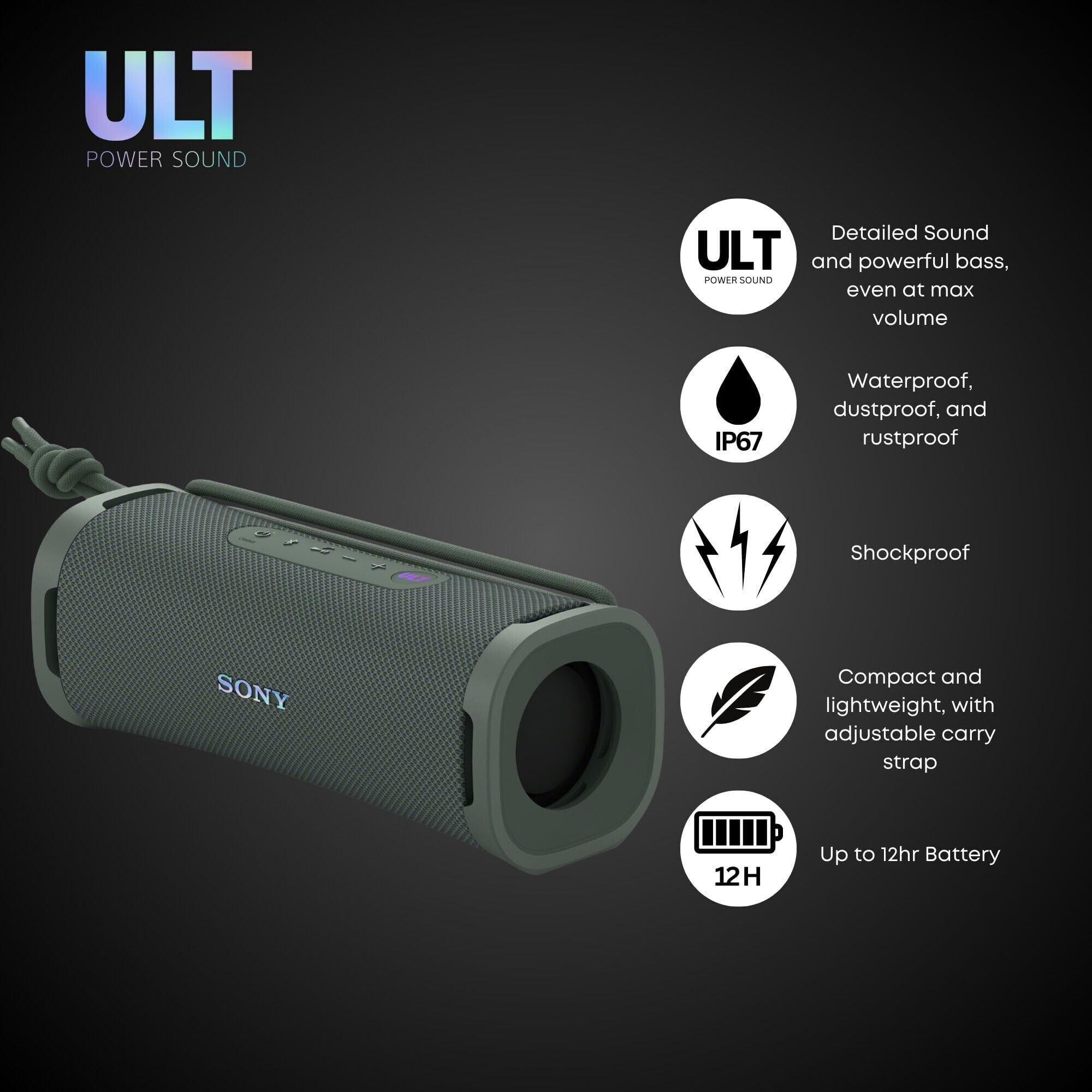 - Bundle Includes: Sony SRSULT10G ULT FIELD Series Speaker (Forest Gray) and Hardshell Travel and Protective Case for Bluetooth Speakers
