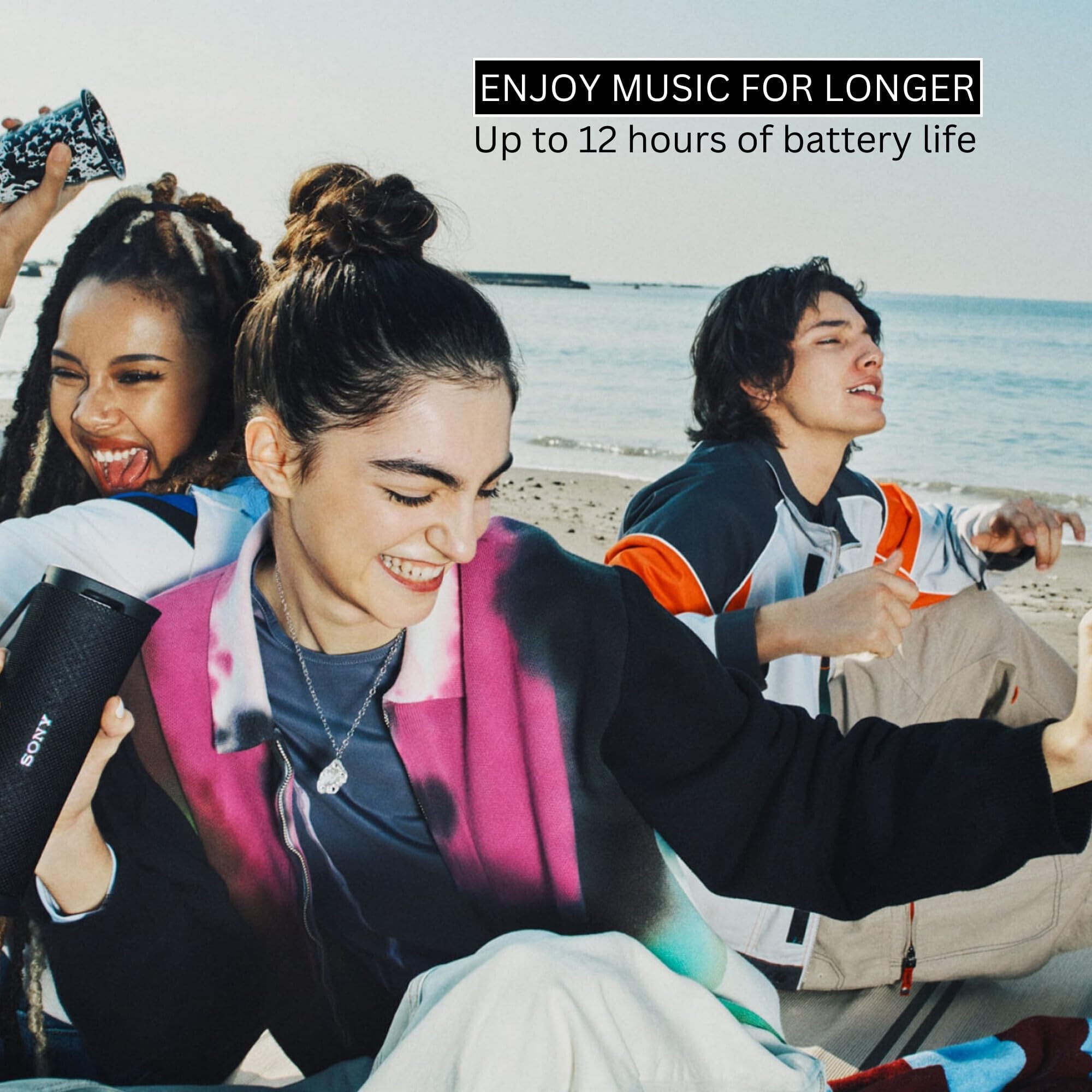 With the Sony ULT FIELD 1 Bluetooth Wireless Portable Speaker, experience enhanced bass and powerful sound built into a compact package. Complete with a multi-way strap for ease of use, take your waterproof, dustproof, and even shockproof speaker anywhere for longer, thanks to a long battery life. Dive into the front row of a concert with the ULT POWER SOUND series. Built for music lovers, it produces powerful deep sound designed to make your heart tremble. Prepare to feel the bass. Enhance your low-end frequencies for exceptional bass that will make your heart tremble. Enjoy booming bass and powerful sound in a compact package. Press the ULT button to enjoy the powerful sound and enhanced bass. The layout of the side passive radiators has been optimized to enhance bass sound. The Sound Diffusion Processor expands sound in any space with its DSP technology. An easy-to-carry design that’s waterproof, dustproof, and shockproof. This compact speaker is designed to let you take your music anywhere thanks to its multi-way strap and the long battery life keeps the party going longer when you get there. With its compact, easy-to-grab design, you can take it with you wherever you go. Use the detachable multi-way strap to carry the speaker with you, or suspend it outdoors. With an IP67 water and dustproof rating, this speaker is ready for just about anything. It's also rustproof, which means you can enjoy music even at the beach. The ULT FIELD 1 has undergone extensive shock testing to ensure it can withstand the inevitable knocks, bumps, and scrapes that come with everyday use. Up to 12 hours of battery life, pumping out music as long as you like.