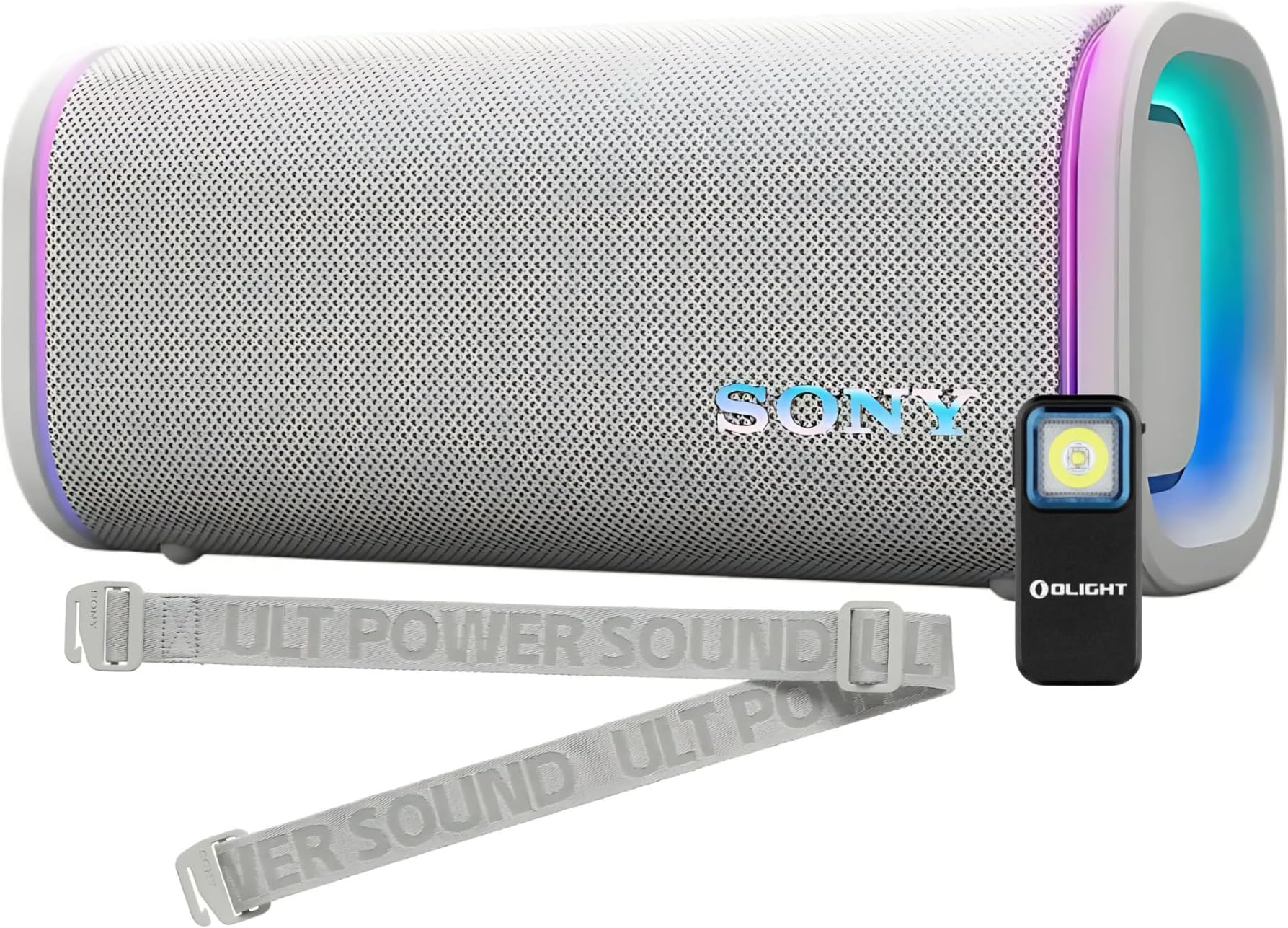 Sony ULT Field 5 Wireless Portable Speaker IP67 Waterproof 25H Battery (Off White) Bundle with Rechargeable Clip-On Light (2 Items)