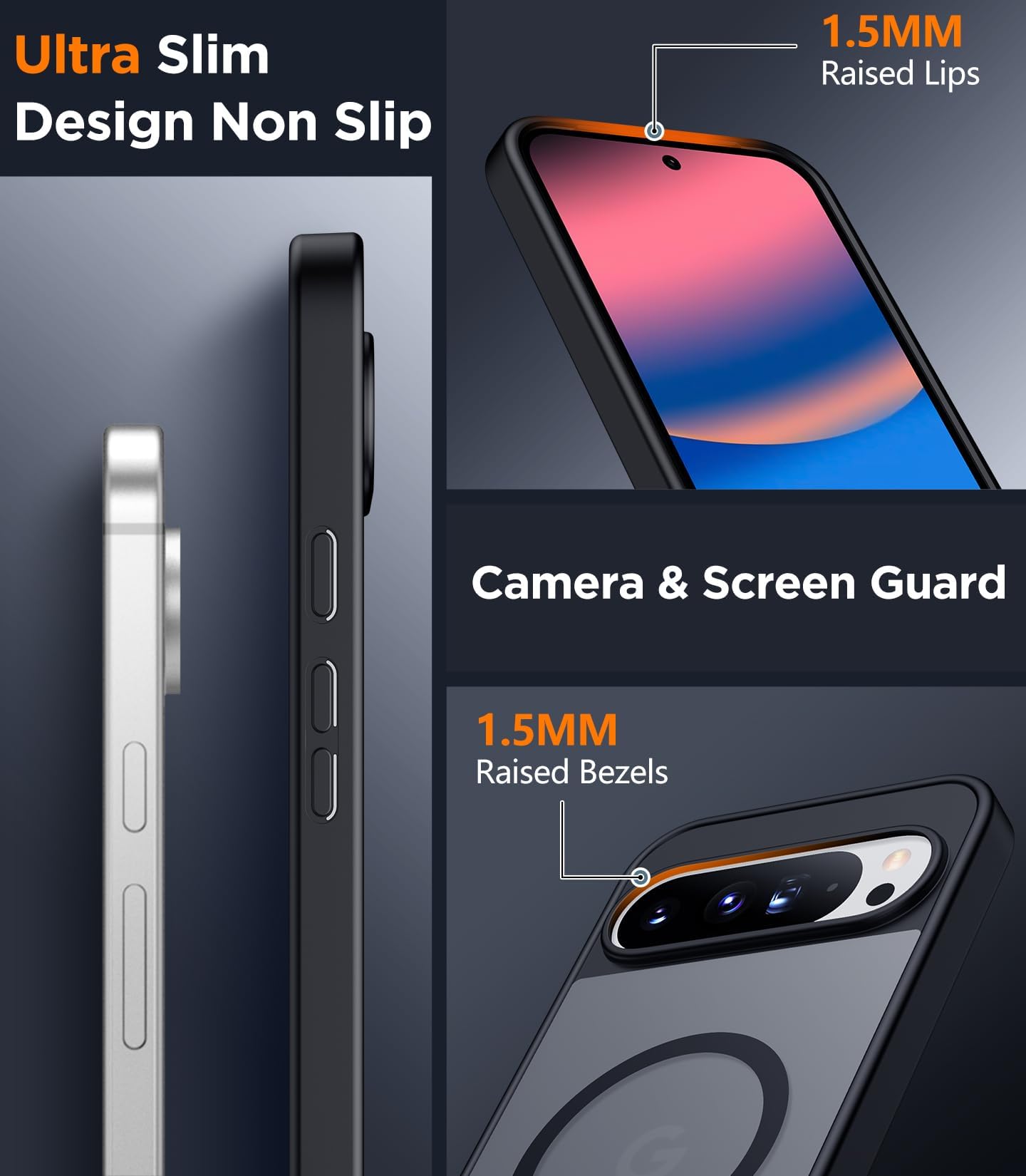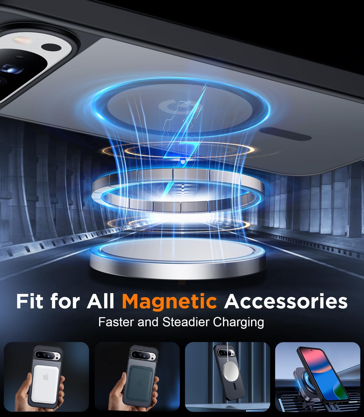 כיסוי SPIDERCASE מעוצב עבור גוגל פיקסל 10 פרו XL, [תואם ל-Magsafe] כיסוי שקוף מט עמיד בפני זעזועים נגד טביעות אצבעות לטלפון פיקסל 10 פרו XL, שחור