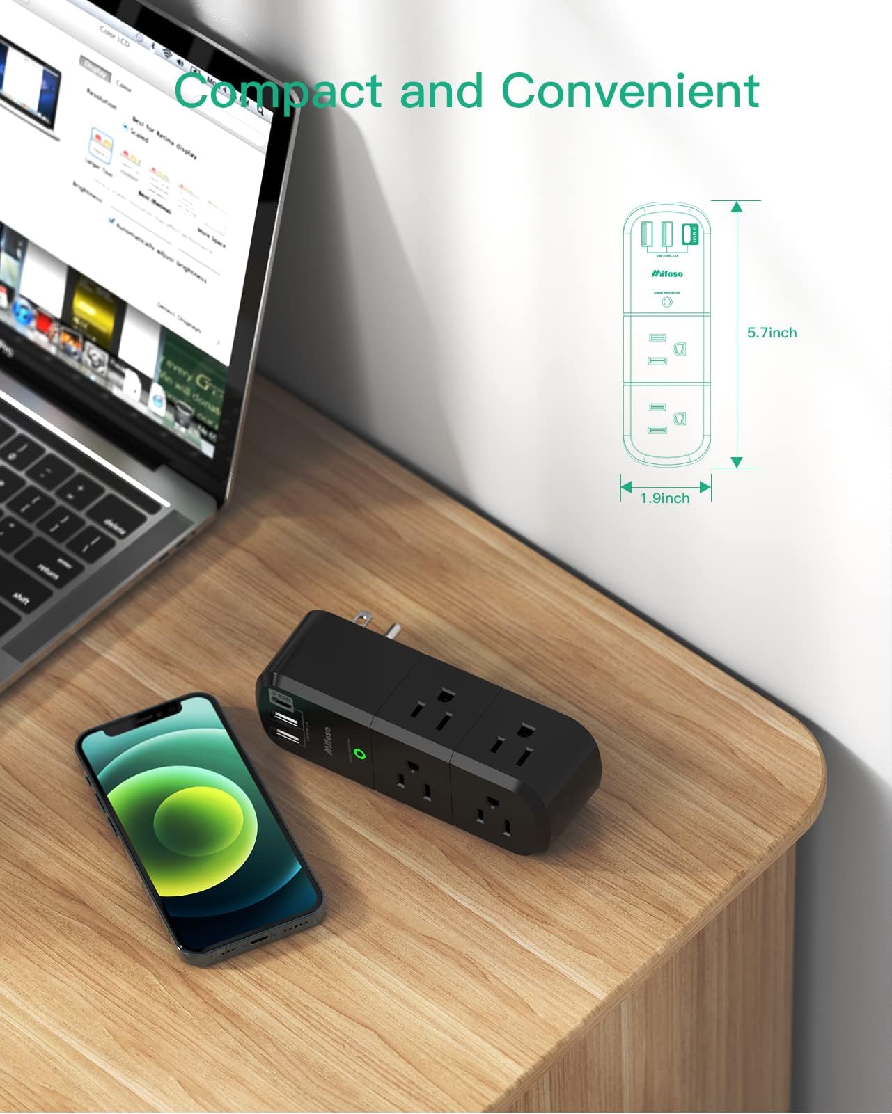 - 【מרווח רחב ותקע AC מסתובב】 - מפצל חשמל ייחודי בעל 3 צדדים לחיסכון במקום, 6 שקעי AC עם מרווח רחב ביניהם, מופרדים מספיק כדי להתאים לתקעים גדולים מבלי לחסום זה את זה. מפצל החשמל המסתובב יכול להסתובב שמאלה וימינה 90 מעלות בנוחות, עיצוב קומפקטי (5.7*1.9*1.7 אינץ') וקל לנשיאה, לשימוש בכל מקום שצריך.