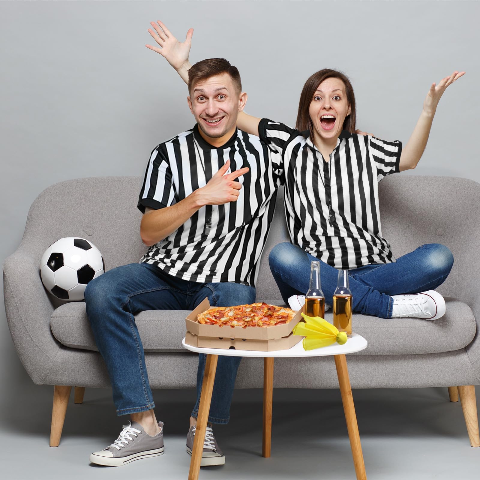 חולצת שופט Syhood לגברים ונשים, משרוקית פסים שחורים ולבנים כדורגל חולצת שופט רשמית ליל כל הקדושים (גדול)
