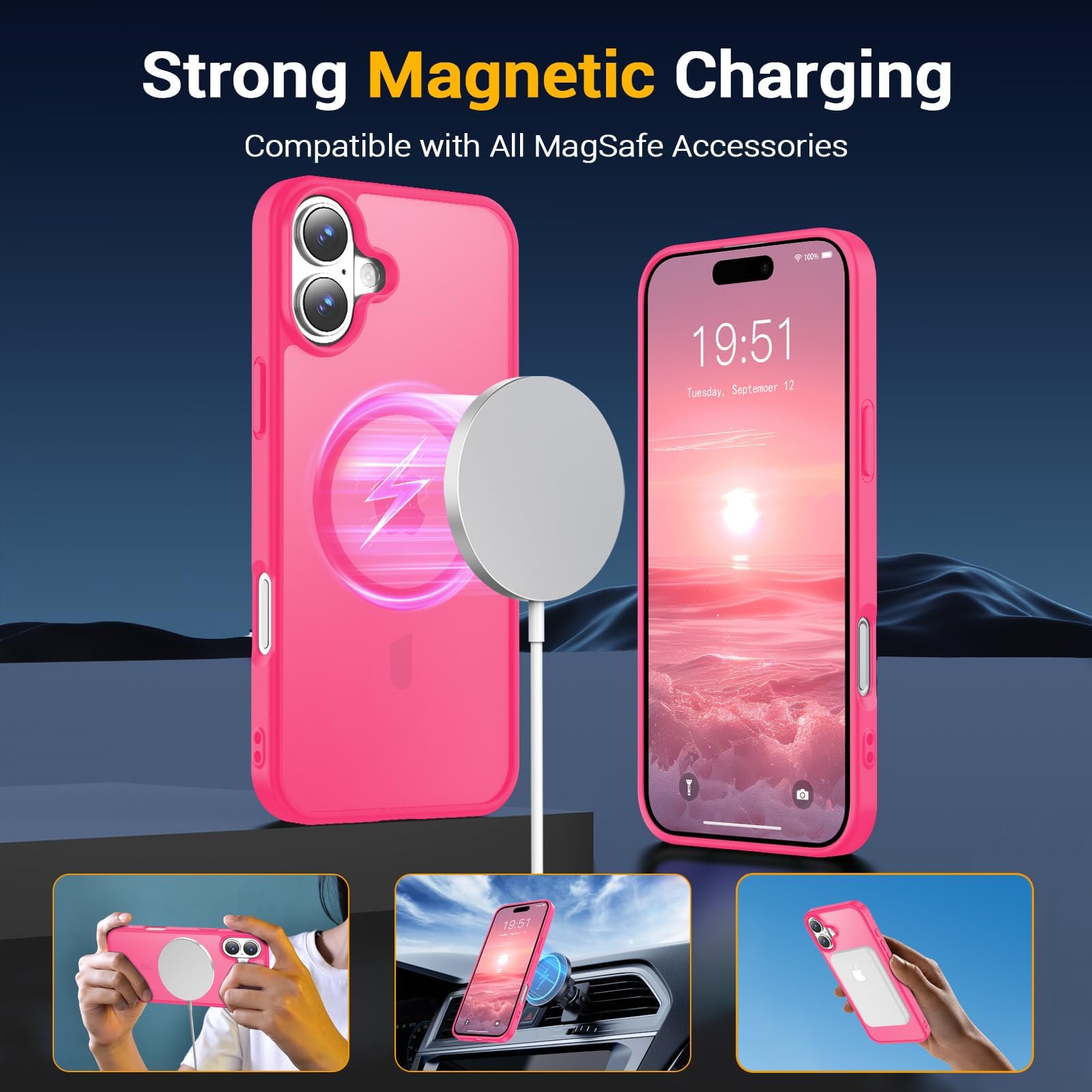 - מגנטי חזק: תואם למטענים אלחוטיים כמו MagSafe ומכשירים אחרים, עם מגנטים מובנים חזקים להתאמה בטוחה. פשוט הניחו את הטלפון על המטען מבלי להסיר את הכיסוי לחיבור אמין למטענים ואביזרים מגנטיים.